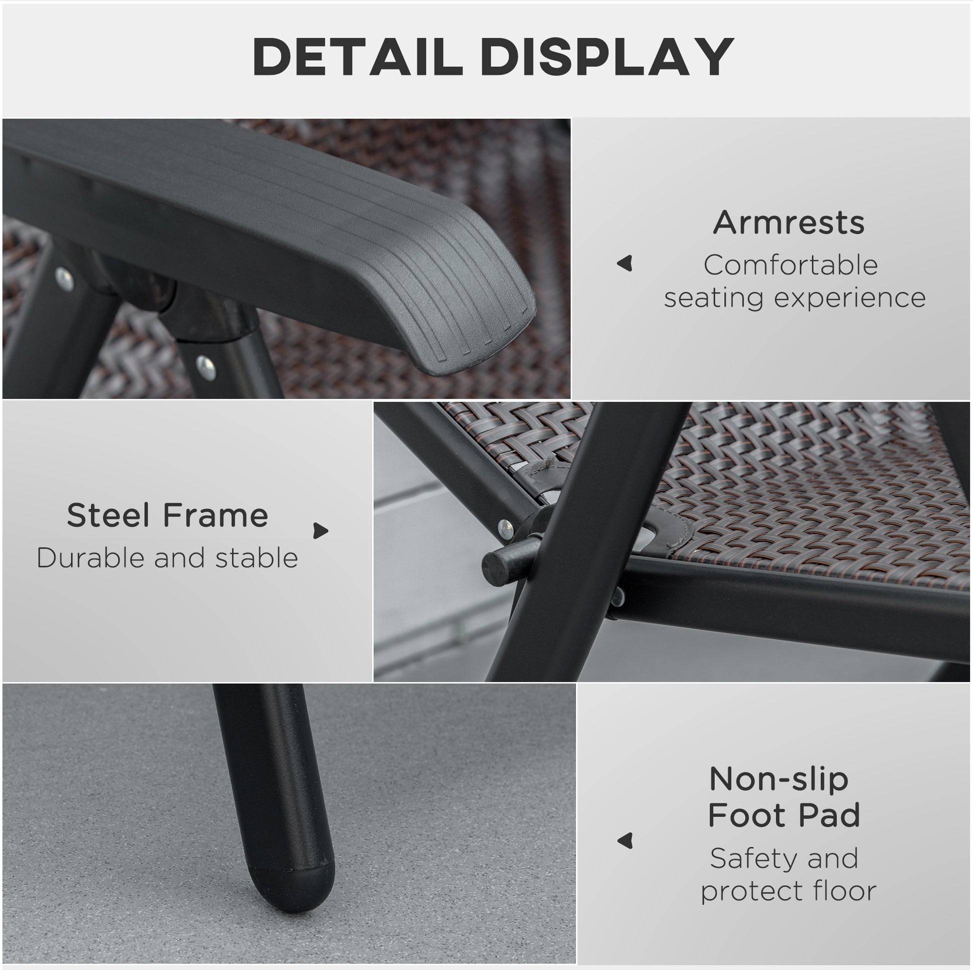 Outsunny Set of 2 Outdoor Wicker Folding Chairs, Patio PE Rattan Dining Armrests Chair set with 7 Levels Adjustable Backrest, for Outdoors, Camping, Red Brown