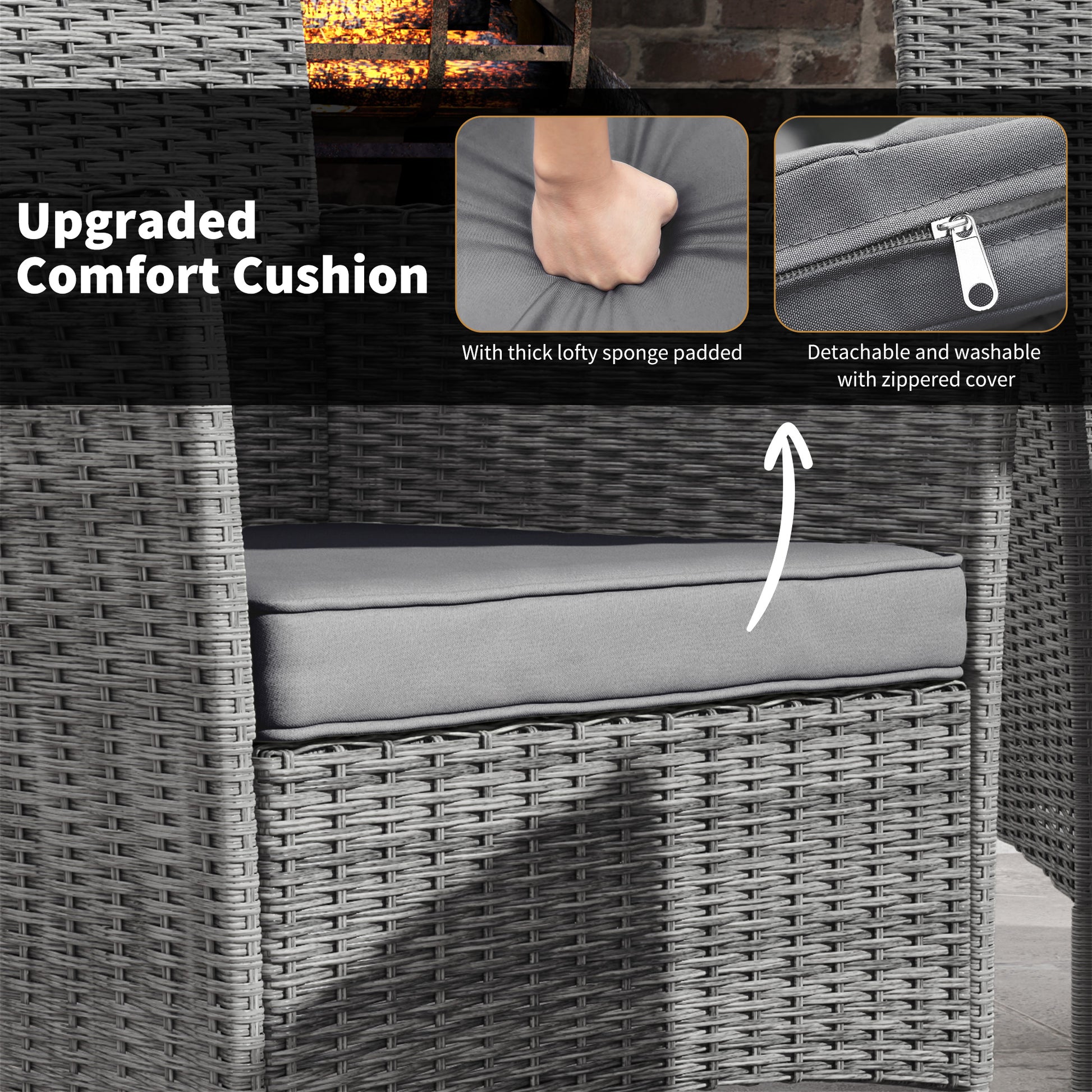 - Detachable cushion cover made of 180g/㎡ polyester has zipper for smooth opening and closing