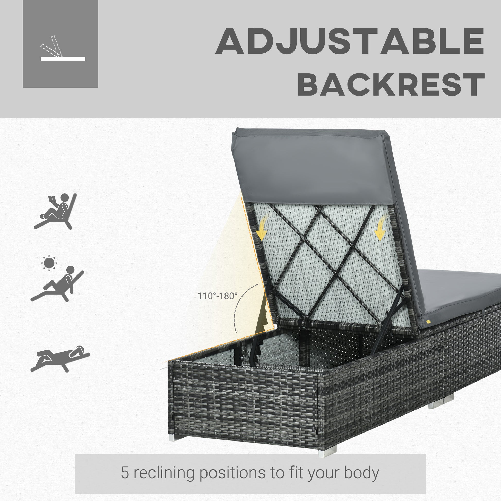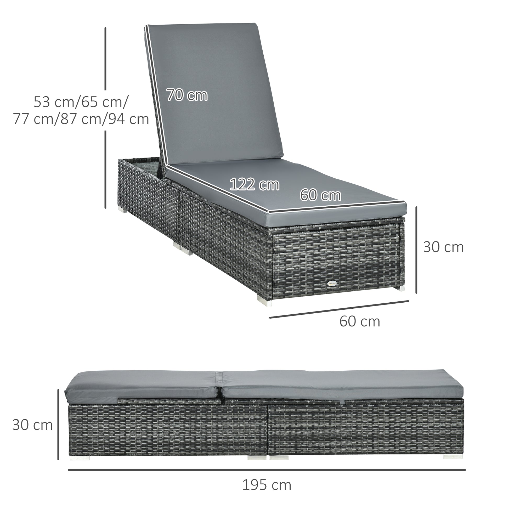 Rattan Sun Lounger Adjustable Garden Furniture Reclining Bed Chair Patio Wicker Grey