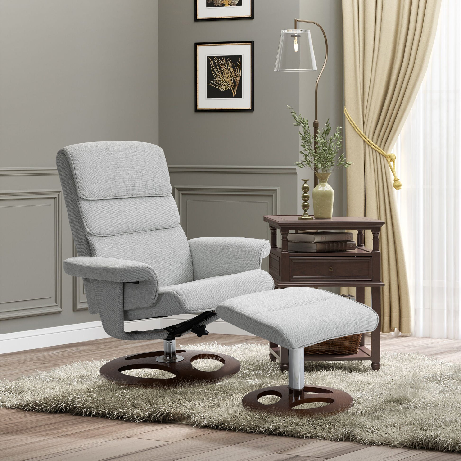 Recliner Chair Ottoman Set 360° Swivel Sofa Wood Base Grey