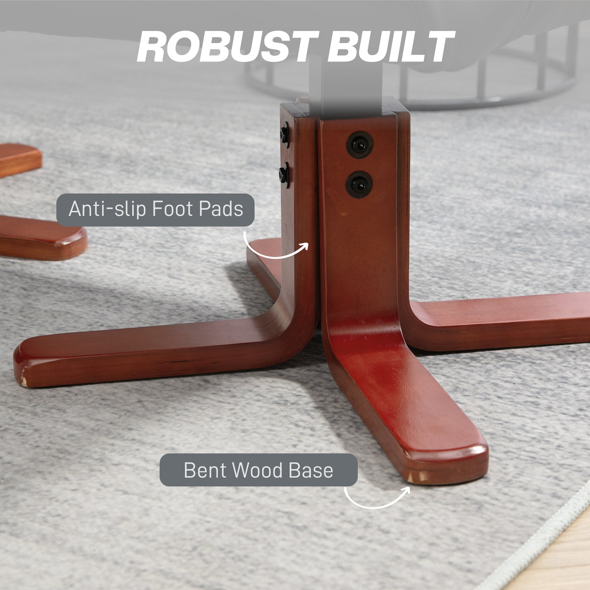 - Bent wood base for strong support, with anti-slip feet