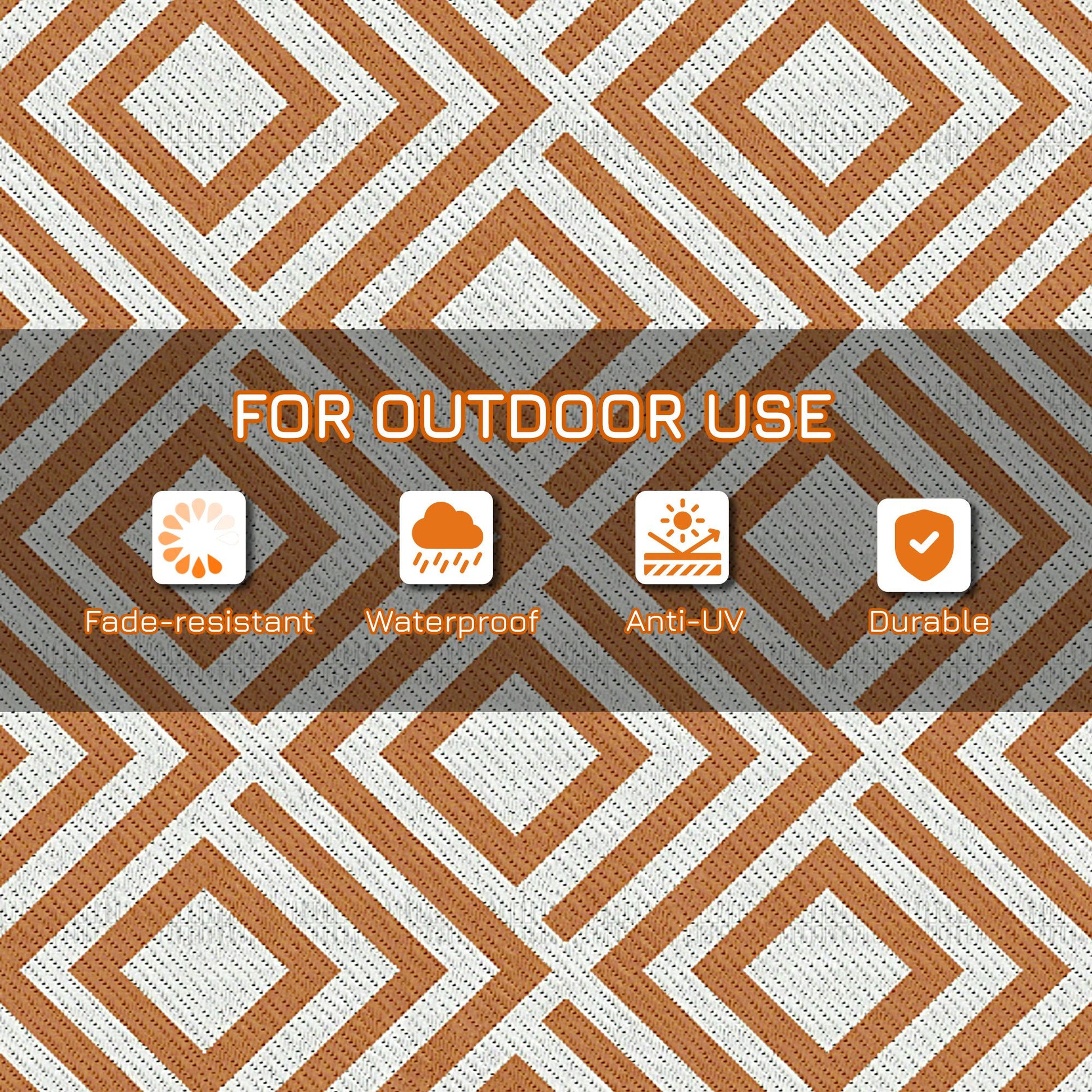 The waterproof outdoor rug is great for using where you want outdoors. Whether it's for camping, picnics, festivals or your own garden, simply fold it and go. Durable and water-resistant material makes it suitable for outdoor use. Plus, the plastic outdoor rug is reversible, so you can double the use when one side gets dirty. Comes with carry bag to keep safe when travelling.