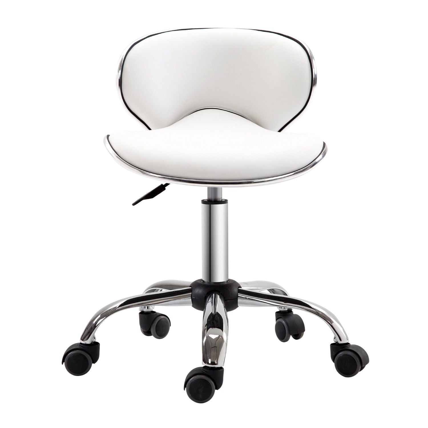 PU Leather Rolling Swivel Salon Chair Salon Stool with Backrest White