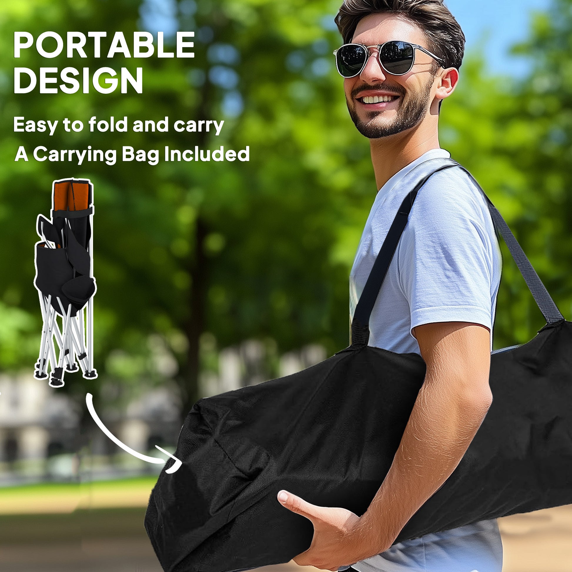 Set of 2 Reclining Camping Chairs, Orange and Black