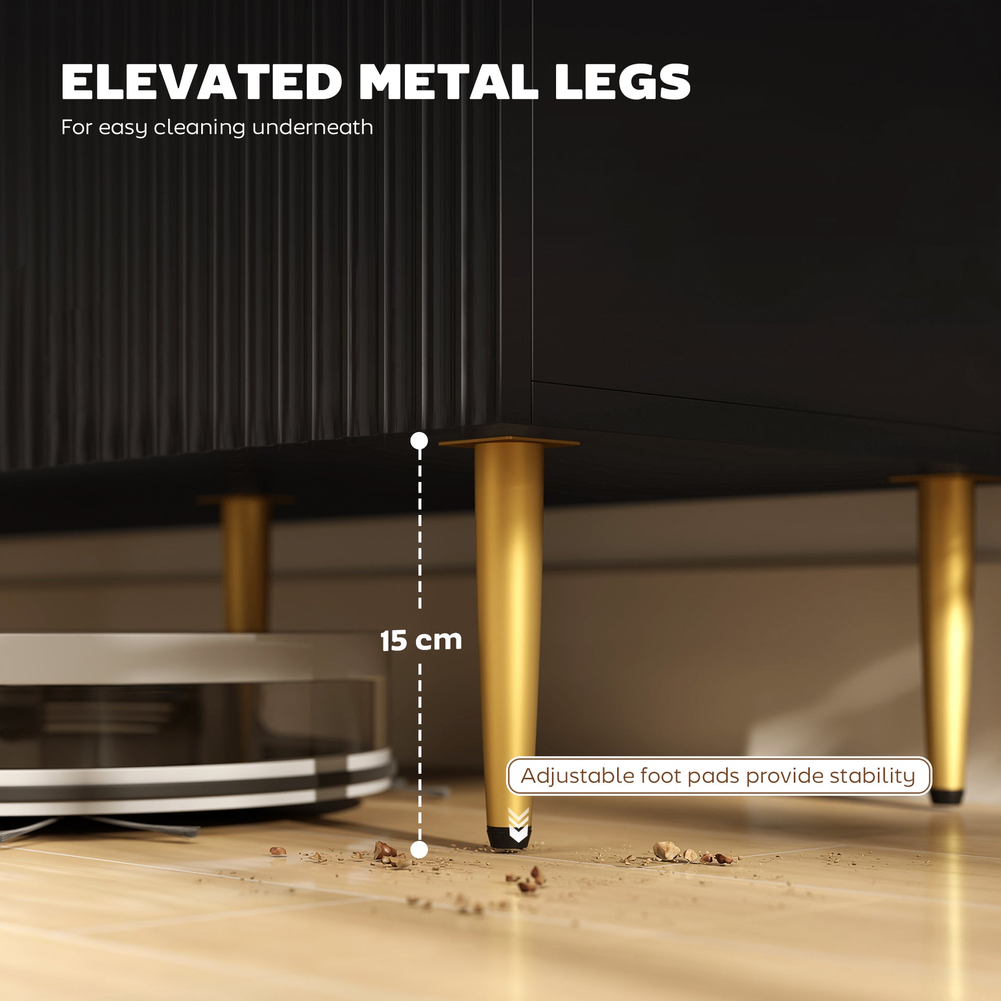 - Metal legs, gold tone handles and fluted panel design give it a modern look