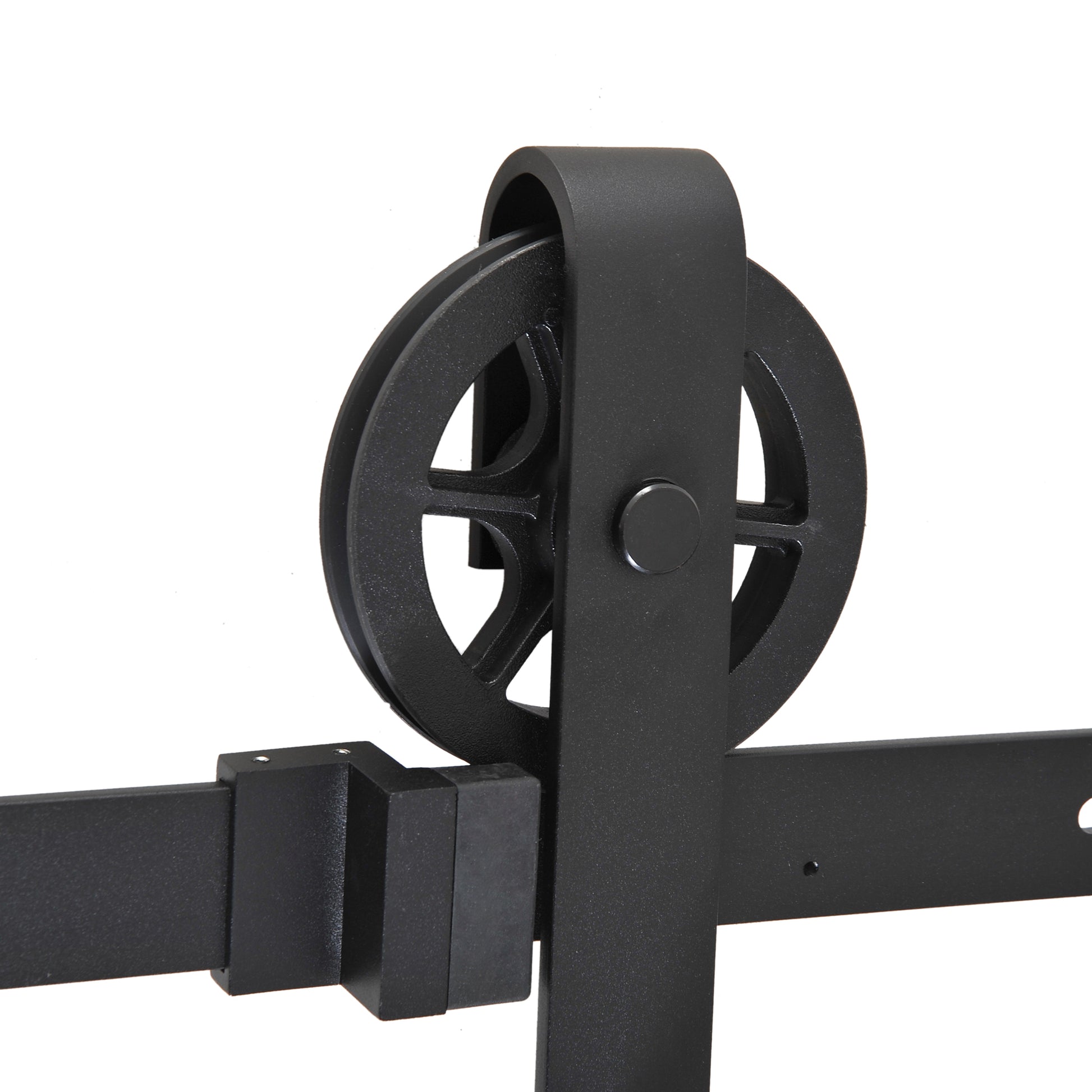 Add beauty and charm to any living area with our highly decorative l HOMCOM sliding door kit. Replacing your traditional internal doors with a barn style door allows you to transform the look and feel of a room. Barn doors can be used anywhere from bedrooms to living rooms, bathrooms and spaces in between. Made from carbon steel material, the sliding door mechanism can be used on both wood and cement walls. Please note that only the hardware is included and not the door itself.