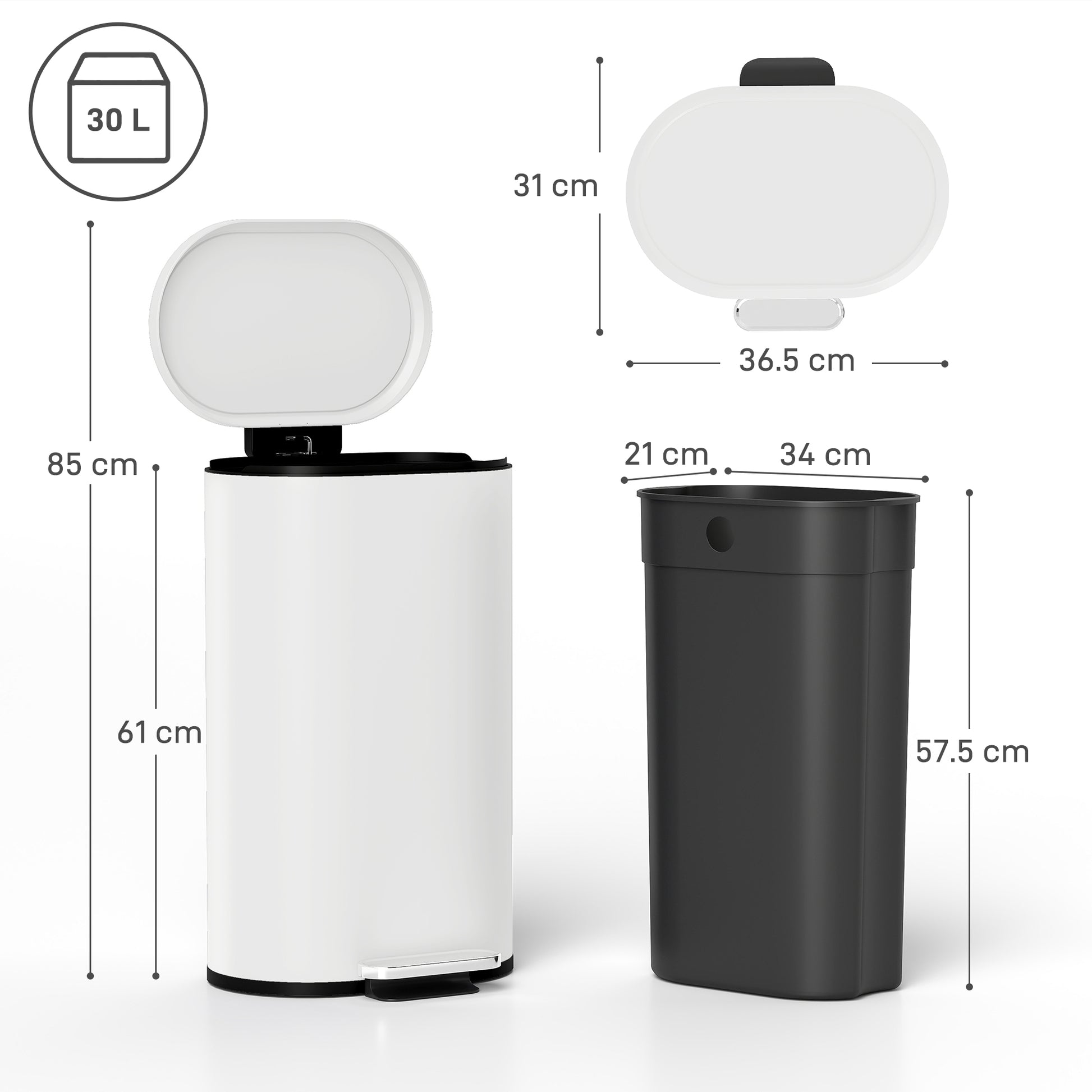 This 30L pedal bin is an essential for every clean and tidy kitchen. It's fitted with a silent soft-close lid so it doesn't bang and distract youalso stays up to a 90° angle for easy filling and bin changing. Made from fingerprint-resistant metal, made into a modern curved shape - a sleek addition to every home.