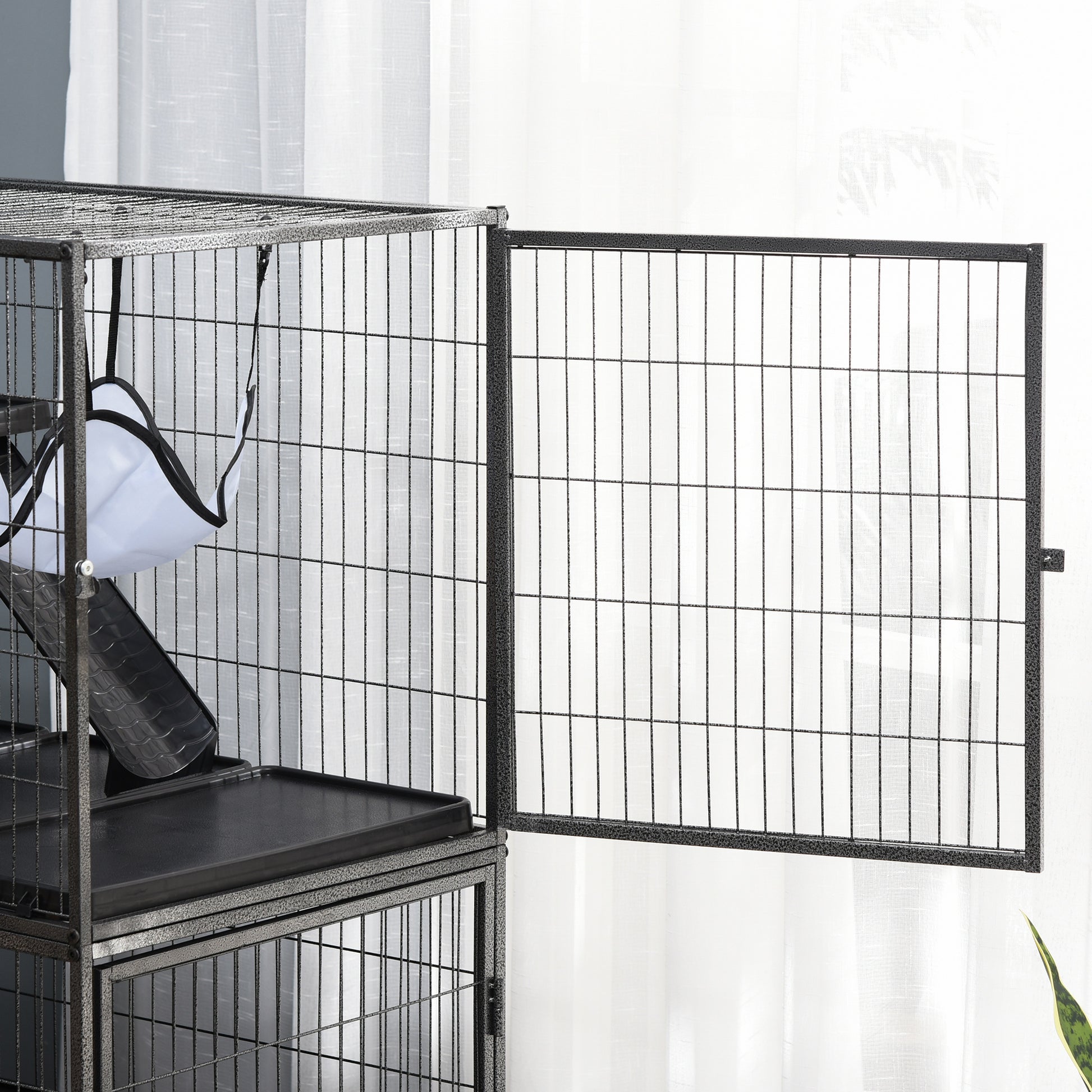 This cage from PawHut makes an ideal home for chinchillas, ferrets and kittens. With multiple platforms and ramps, they'll have lots of space to play and exercise, whilst the hammock at the top provides a spot to relax. Solid metal keeps the cage sturdy and strong, giving your pets a secure home. Four wheels at the bottom to move the cage around – two wheels are lockable, keeping it in place when needed. Finished with a removable tray for simple cleaning, keeping their space tidy.