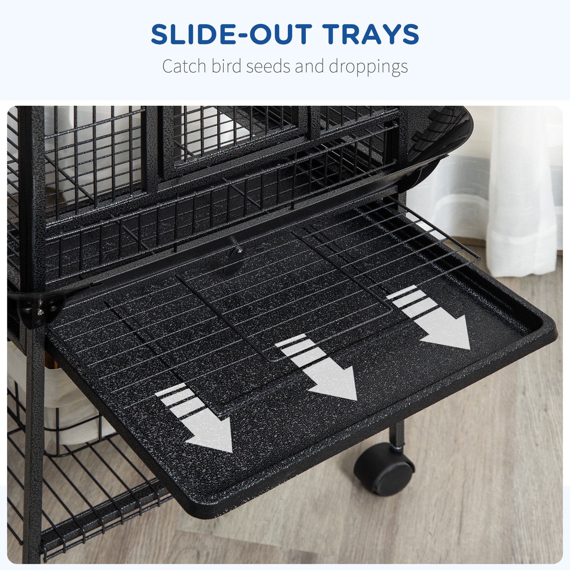Struggling with a cramped, messy cage that steals time with your pet? Imagine the daily frustration of scattered seeds and tedious cleaning. This parrot cage offers a solution. Its spacious inner and integrated play top provide a joyful haven for your friend. Meanwhile, slide-out trays make cleaning effortless, giving you back those precious moments of interaction and ensuring your home stays tidy. This budgie cage simplifies care and enriches your bird's life.Specifications