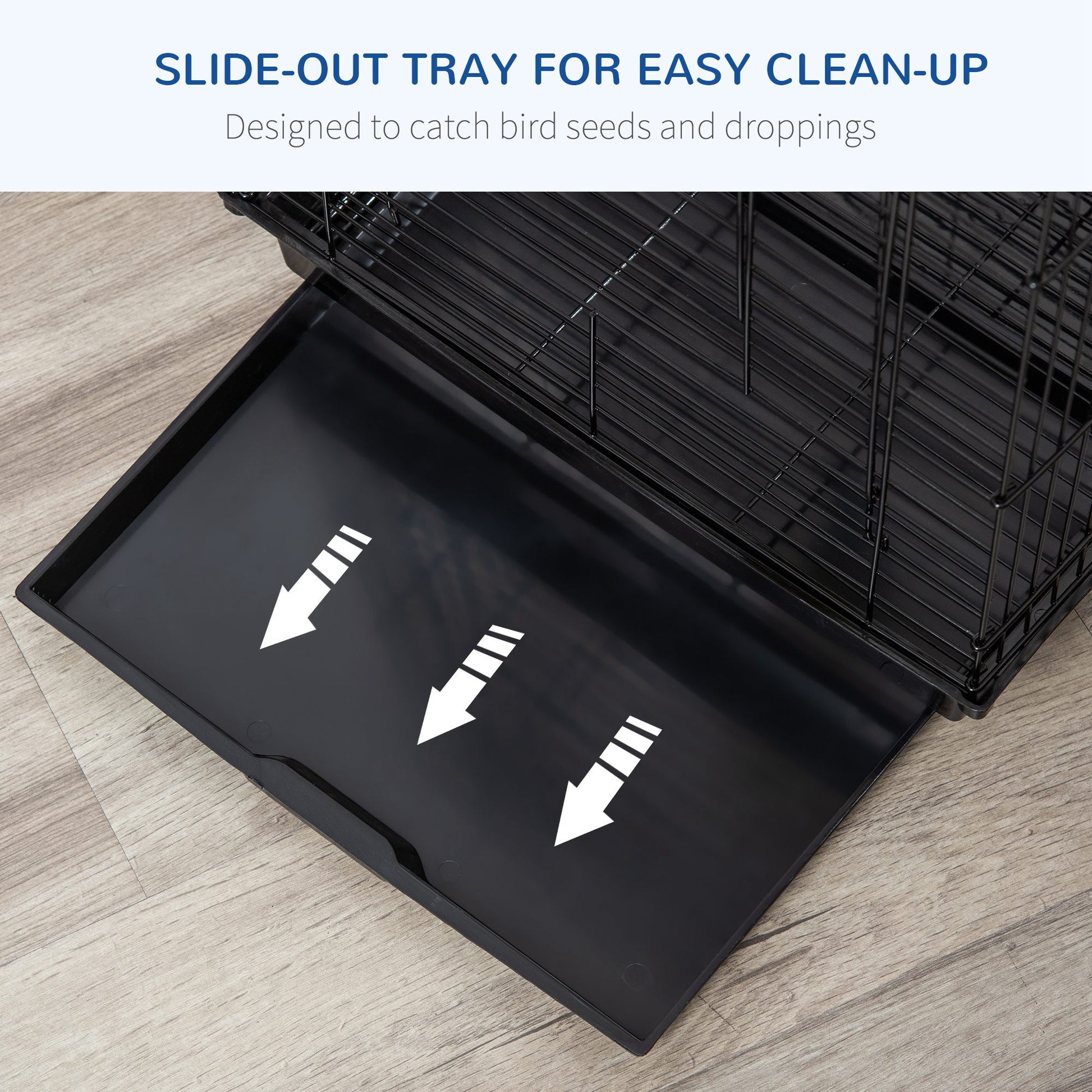 Steel Bird Cage with Openable Top, Stand, Tray, Handles, Feeding Bowls for Parakeet, Finch, Black