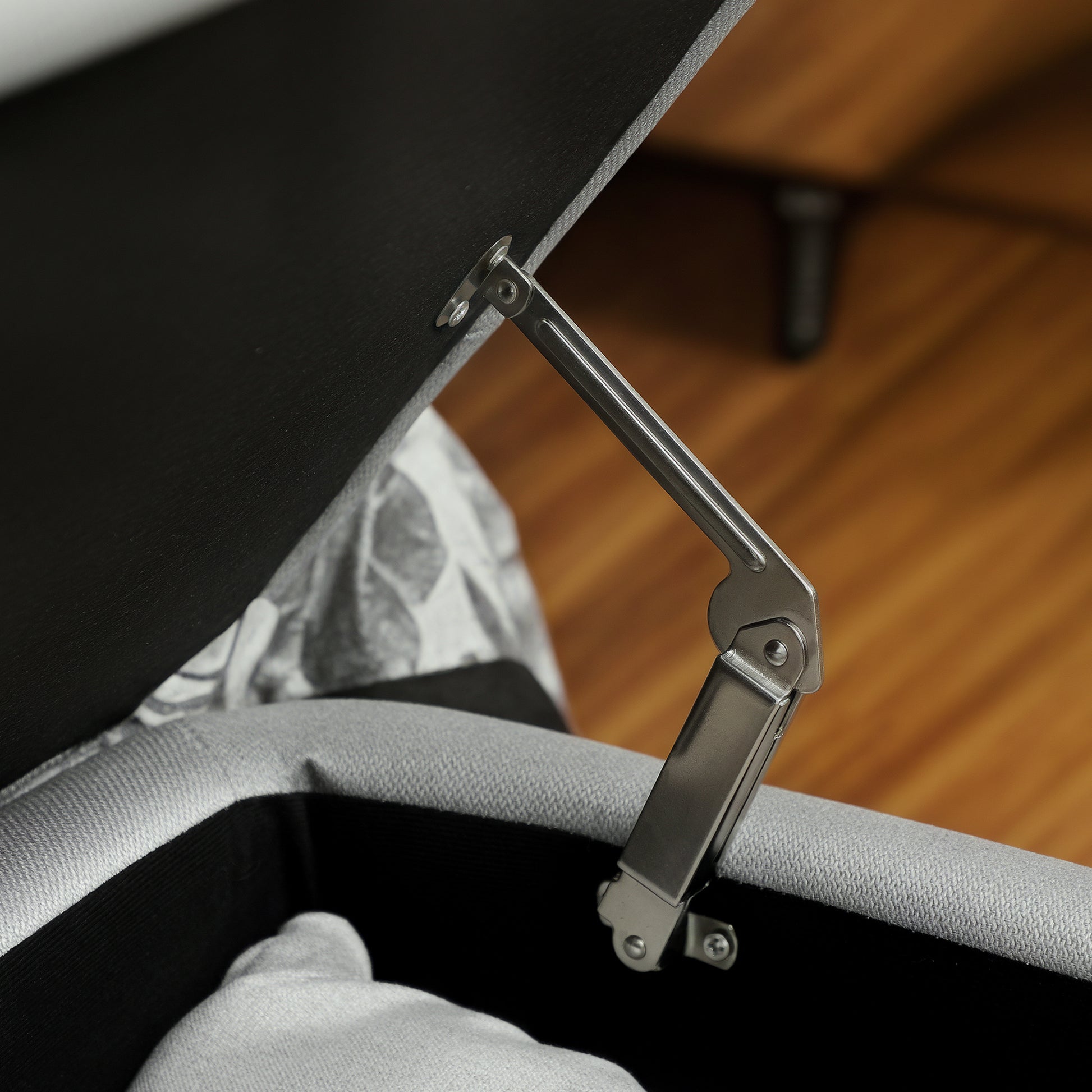 Storage Ottoman Bench, Linen-feel Footstool with Steel Legs, Grey