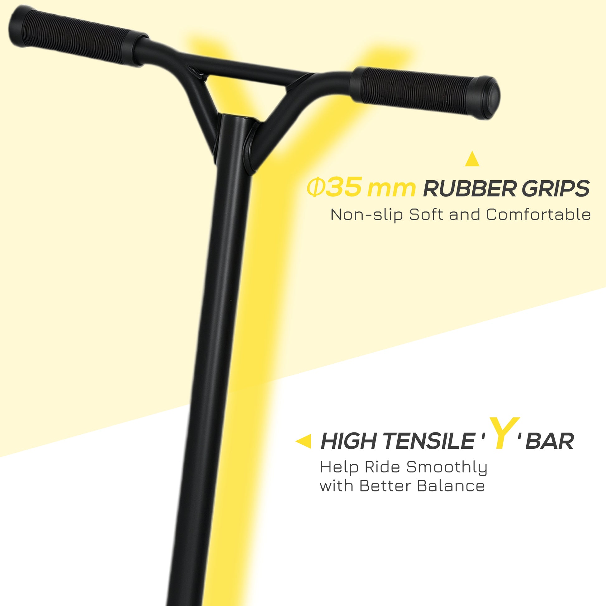 Practice your tricks and stunts with stunt scooters. It has rotating handlebars and front wheels, so you'll learn a new range of scootering skills, whilst the wide non-slip deck keeps you balanced when performing stunts – the rear brake brings you to a swift stop at any time. Made from durable steel and aluminium, its lightweight frame is easy to carry and makes riding much smoother, especially with the PU wheels – the non-slip handlebars are comfortable to hold when riding.Specifications