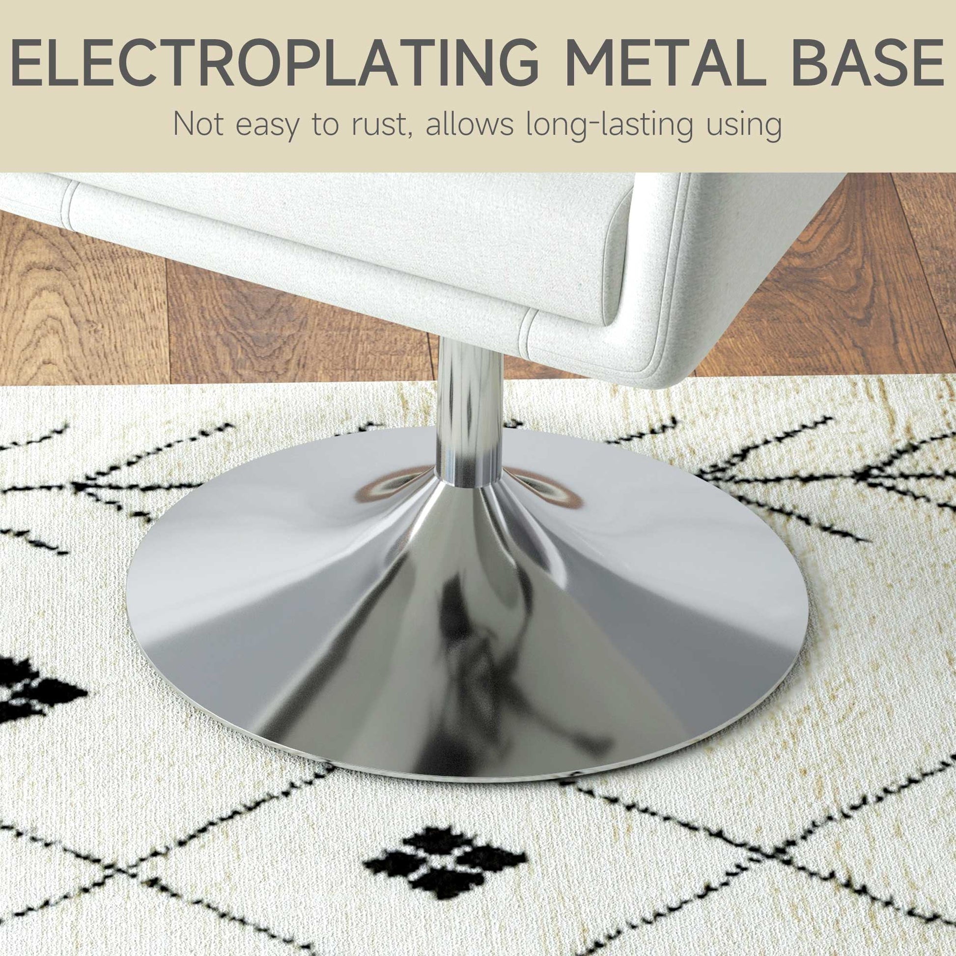 Stylish Retro Linen Swivel Tub Chair Steel Frame Cushion Seat Cream Whit