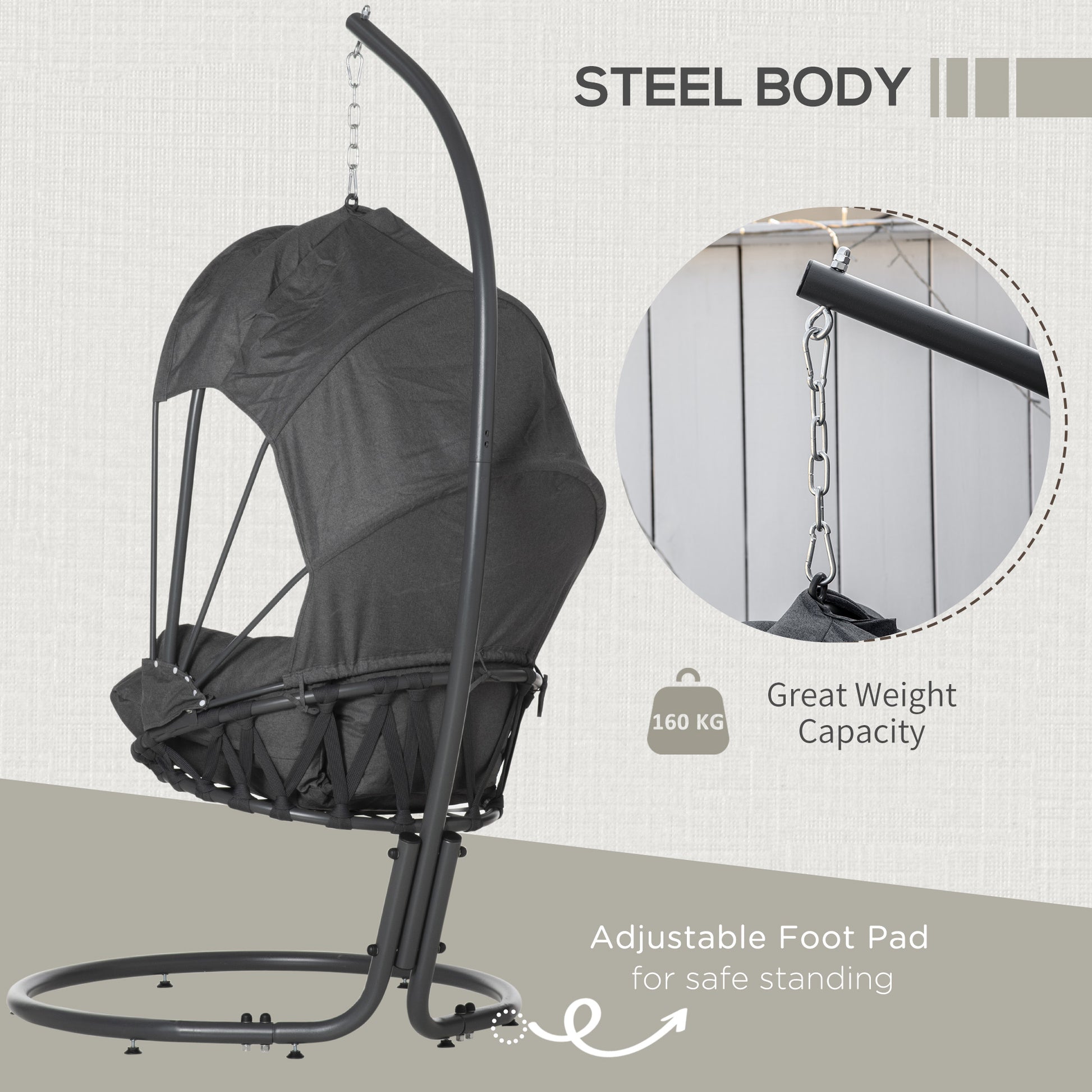 Make the most of your lazy days with this modern egg chair with stand from Outsunny. The retractable canopy, curved back, spacious seat, and soft cushion offer a comfortable sitting experience. The hanging stand of the swinging egg chair is crafted from steel so it's strong, with a large base for balance. Easy to store with a foldable seating basket, space-saving and convenient. Relax and unwind, whenever you want.