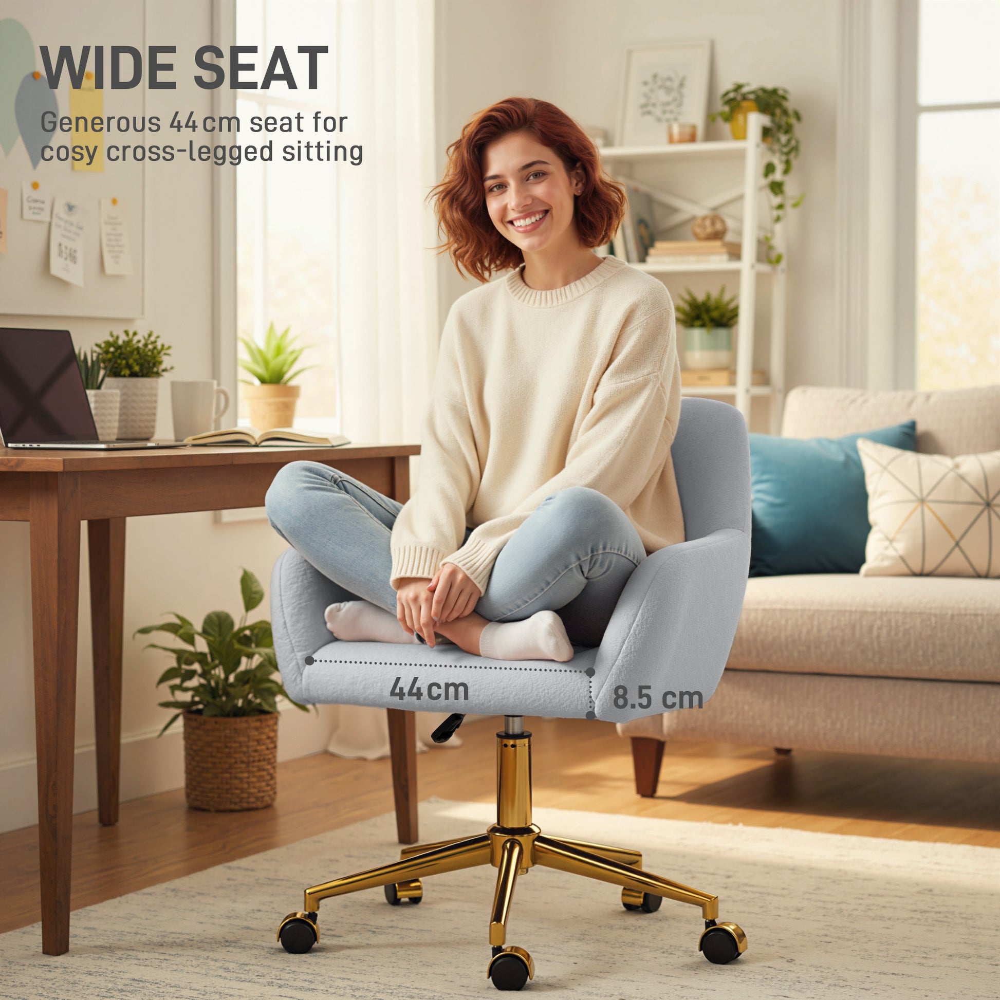 All the softness as you work, all day long - this faux fur office chair. Filled with high-density foam so you can sit and work comfortably, whilst the shape retains to use everyday. Wrapped in faux fur upholstery, this is a soft and plush piece - love using it as much as having it a part of your space. Complete with five wheels to move this desk chair around easily.Specifications