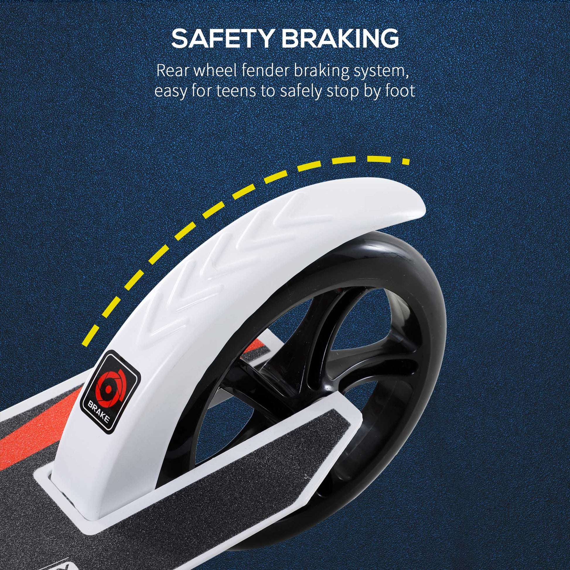 - Back brake for double the choice to stop 2 wheel scooter