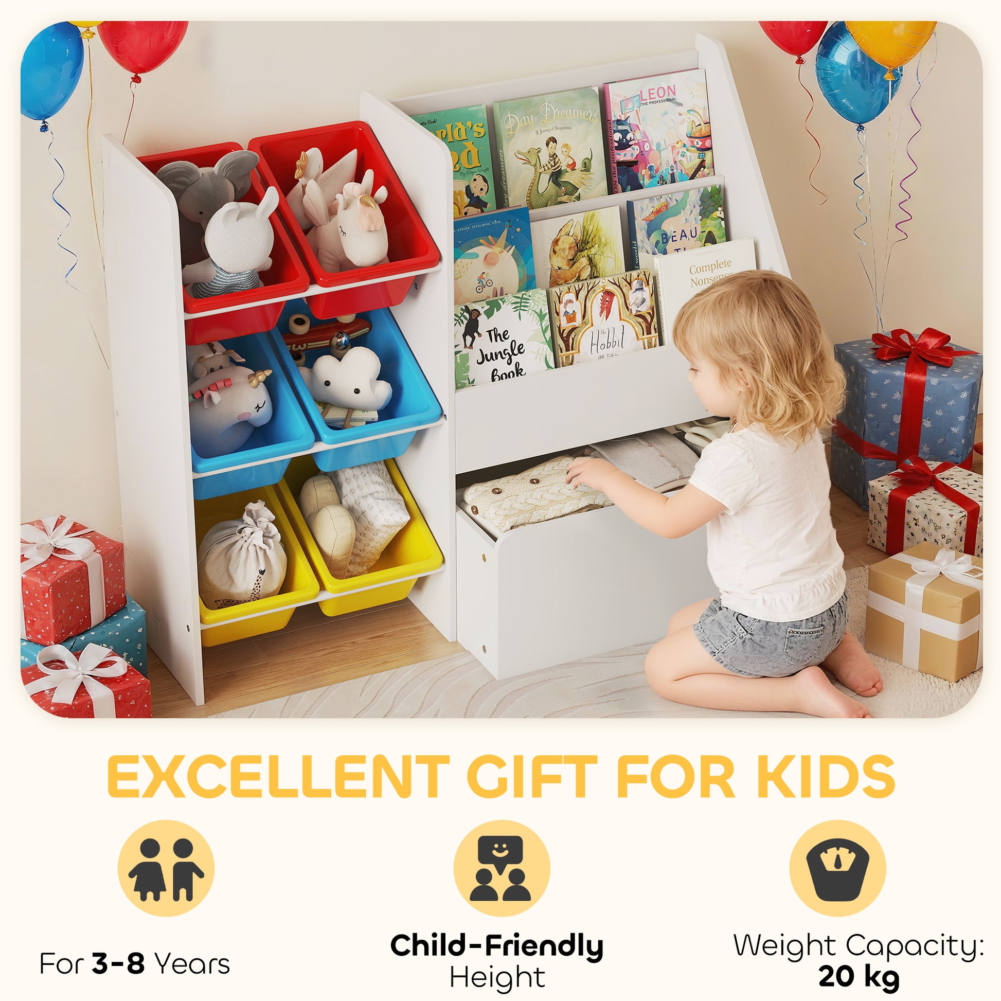 Toy Storage Unit, Childrens Bookcase with 6 Bins, Multicoloured