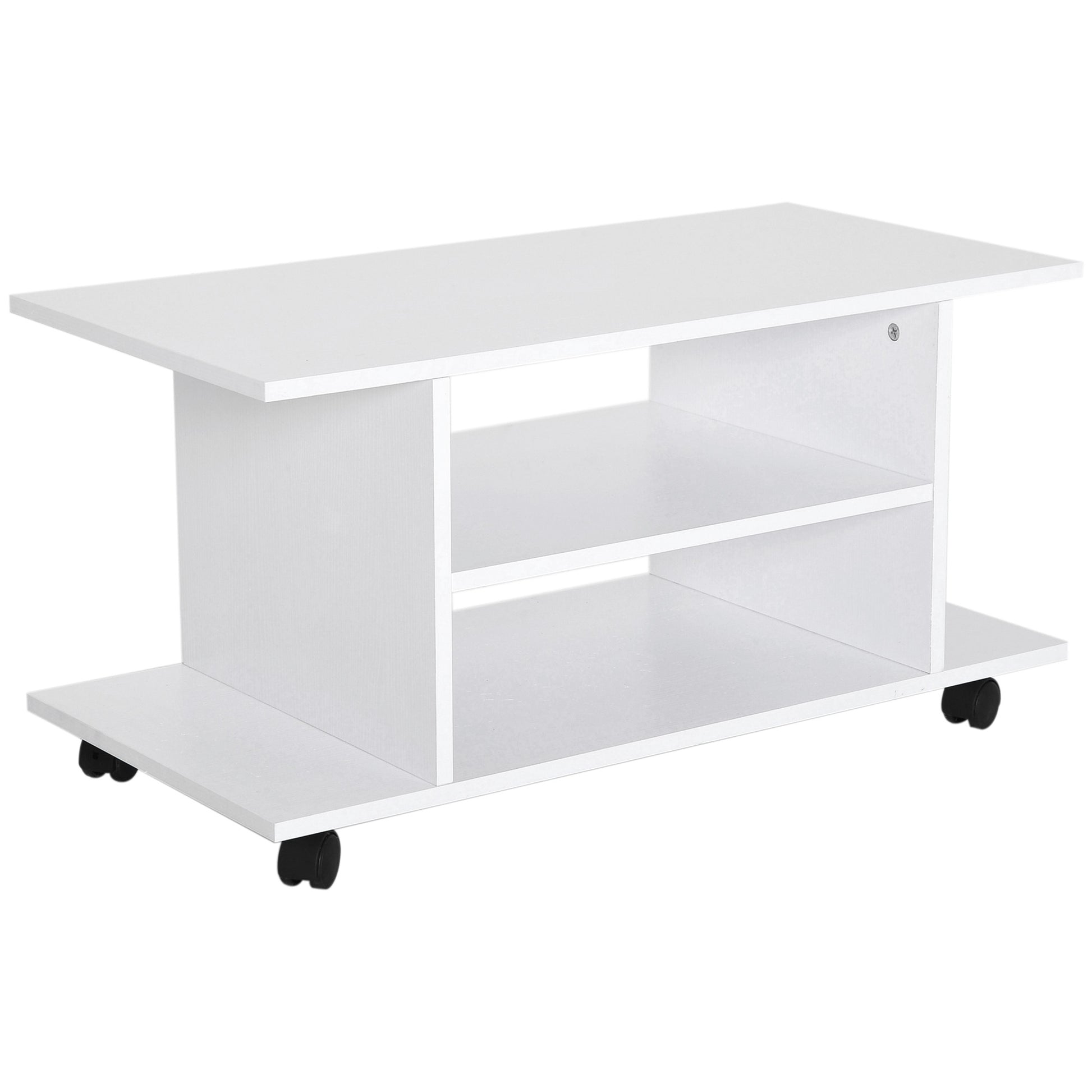 Upgrade your living room with this entertainment unit. This white TV stand does more than holding your TV, it has four storage compartments to provide large storage space for your favourite movies, a collection of video games or books you love to read. Four rolling castor wheels under the media console enable you to move it with ease to wherever you'd like. Without a doubt, it will be an ideal companion for your relaxing moments.