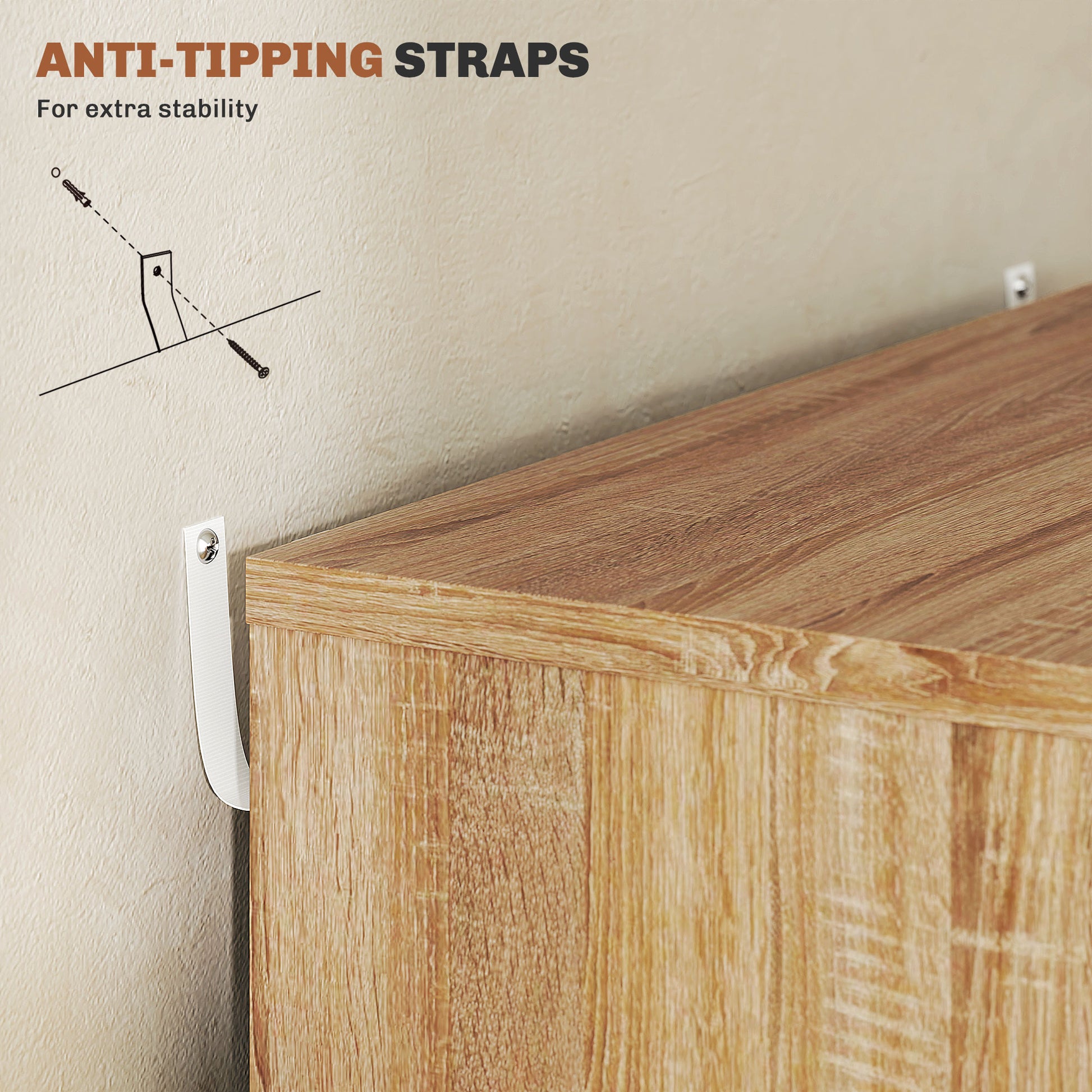 Keep office papers and supplies organised: look to this Vinsetto small filing cabinet. Five office drawers mean plenty of storage and organisation. Wheels on the bottom to move it around with easy - the brakes keep it standing in place whenever you want. Each drawer opens and closes smoothly - with the groove handles making it comfortable to do so. Comes with anti-tipping straps for safety.Specifications