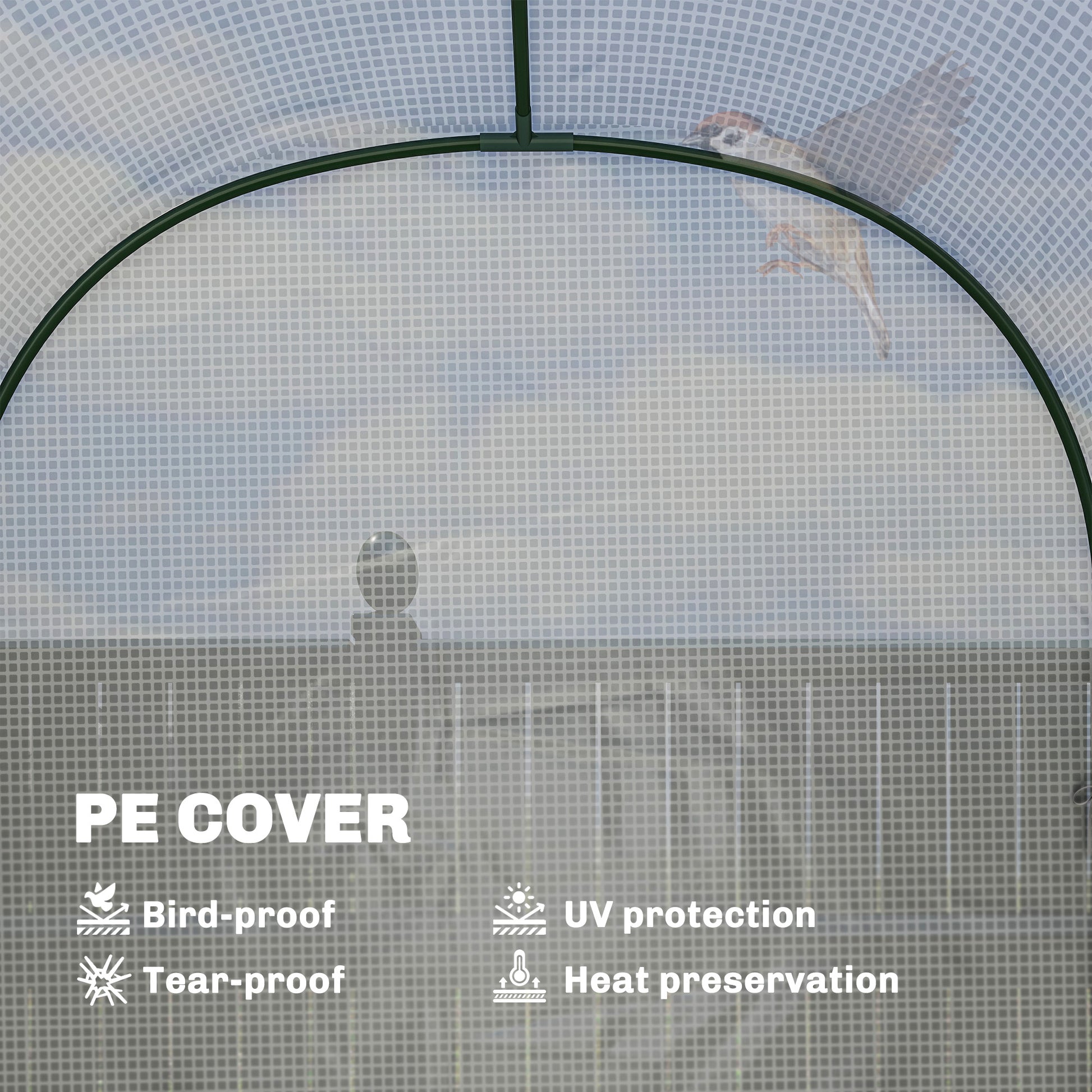 This greenhouse provides a spacious and practical solution for gardening enthusiasts. Featuring a UV-resistant PE cover and a roll-up door, it delivers suitable temperature and humidity conditions for healthy plant growth. You can also organise flower pots, seed trays, fertilizer and gardening tools on the shelves. This functional greenhouse blends durability and convenience for your planting needs!Specifications
