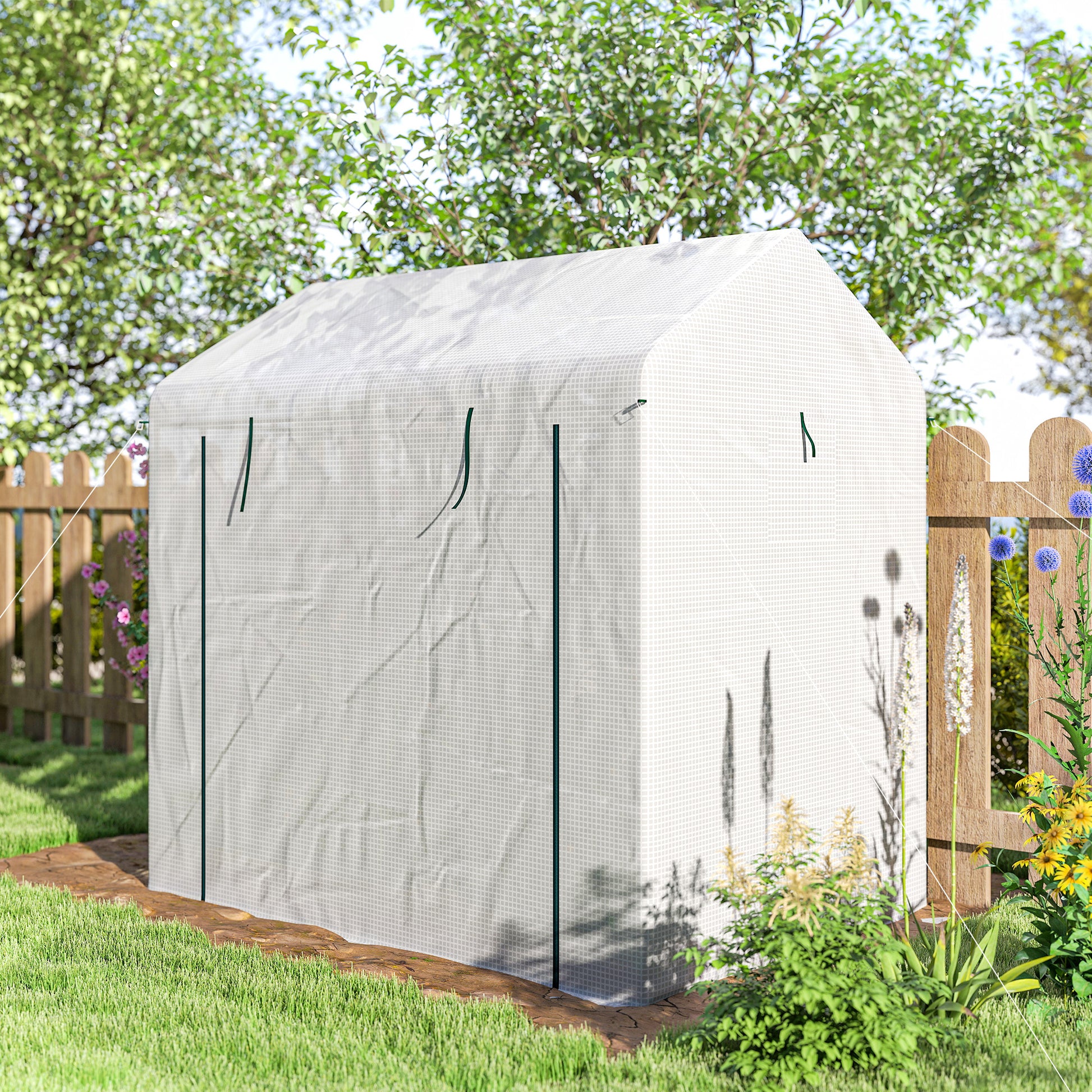Walk-in Greenhouse, Green House with Mesh Windows, White