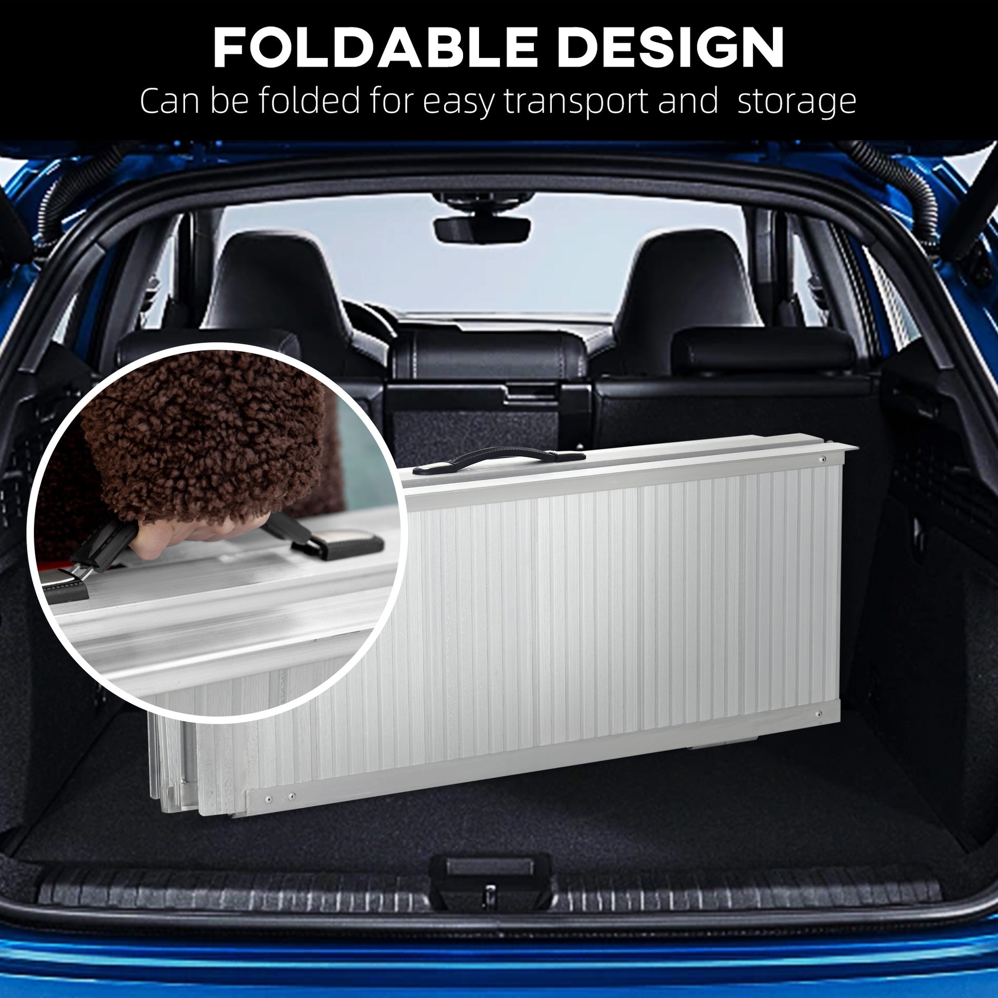 Let HOMCOM help create complete, easy mobility with our wheelchair ramp. Built from a sturdy, anti-corrosive aluminium alloy, this portable ramp uses a ribbed surface to prevent sliding in any weather and has two high side walls to help prevent accidental falls. The threshold ramps is 183cm long, and applicable height is 17-45cm, recommended height is 17-30cm. Not only for use with wheelchairs, this ramp provides ease of access for scooters, bikes and any other unwieldy wheeled object.