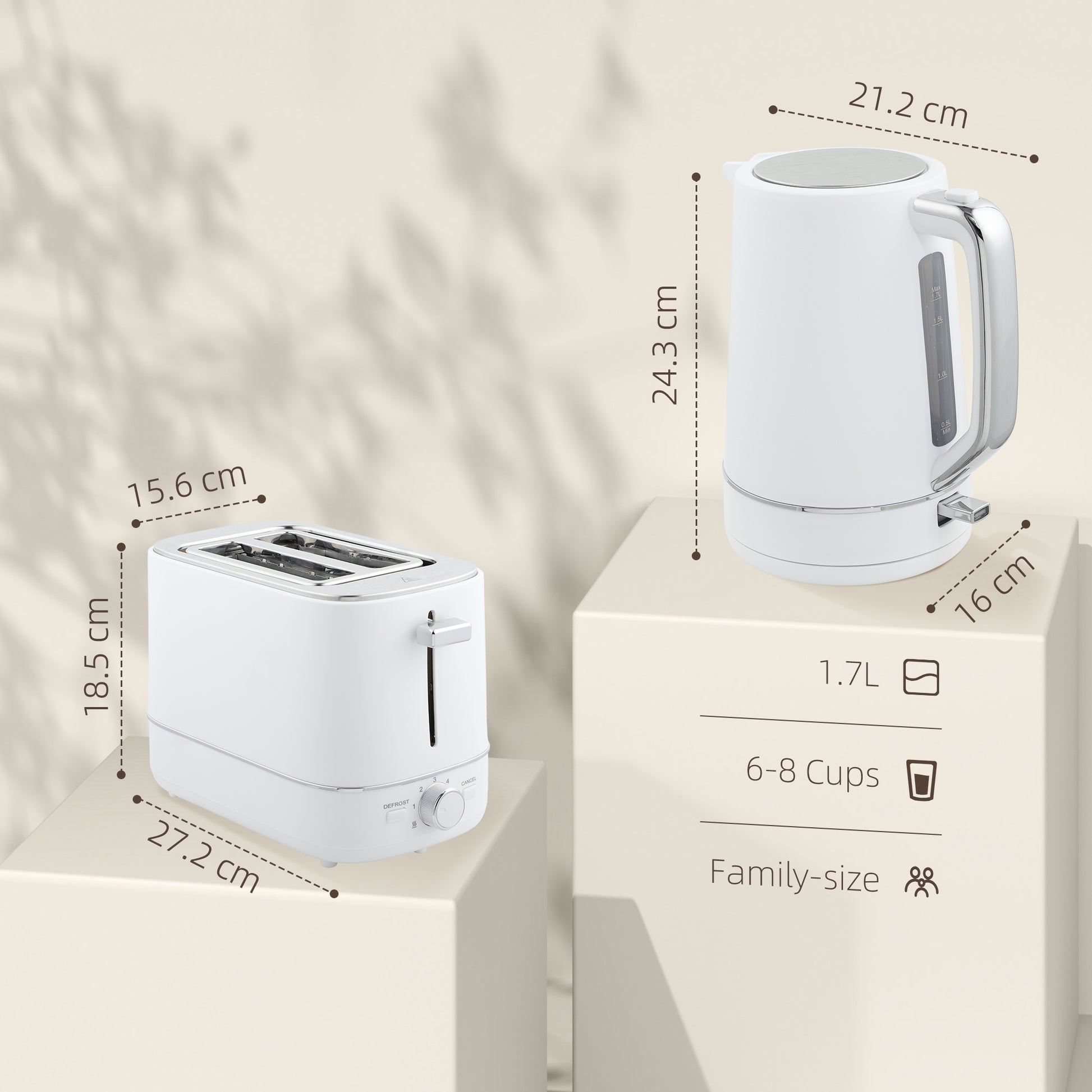 1.7L 3000W Fast Boil Electric Kettle and 2 Slice Toaster Set, White