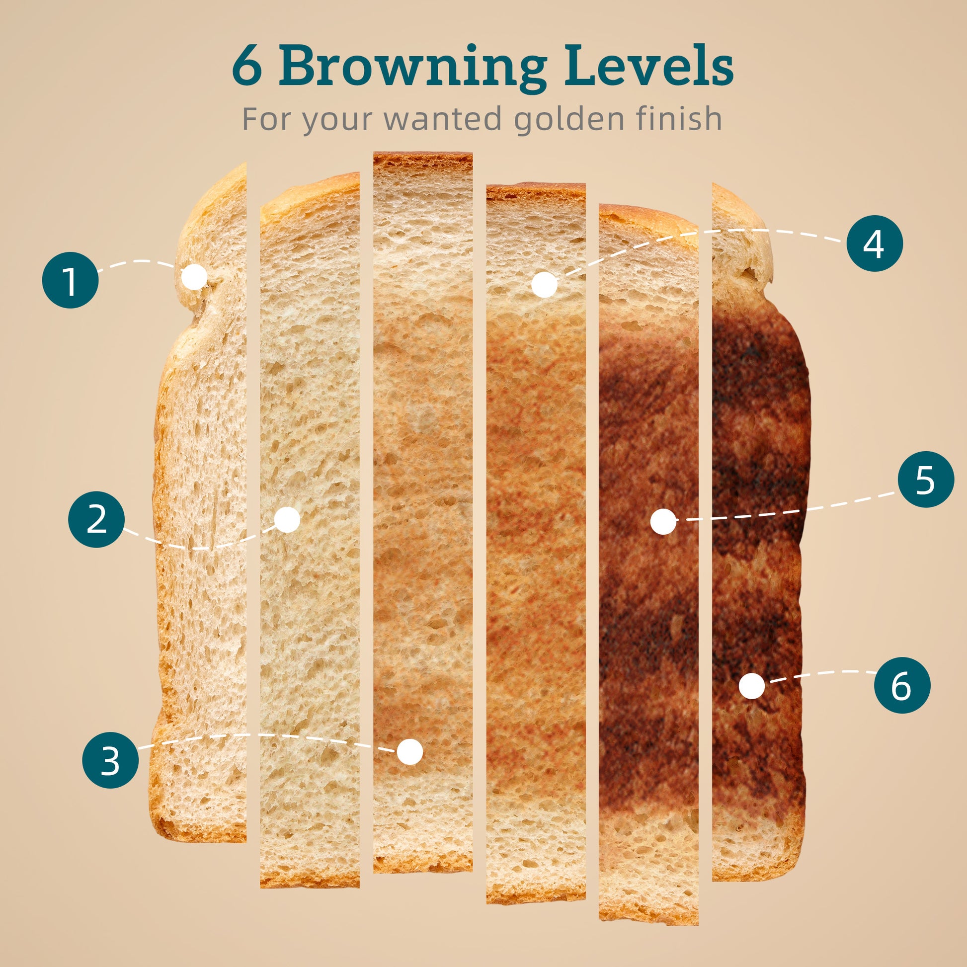 - Two-slice toaster has six browning levels. Defrost, reheat and cancel function