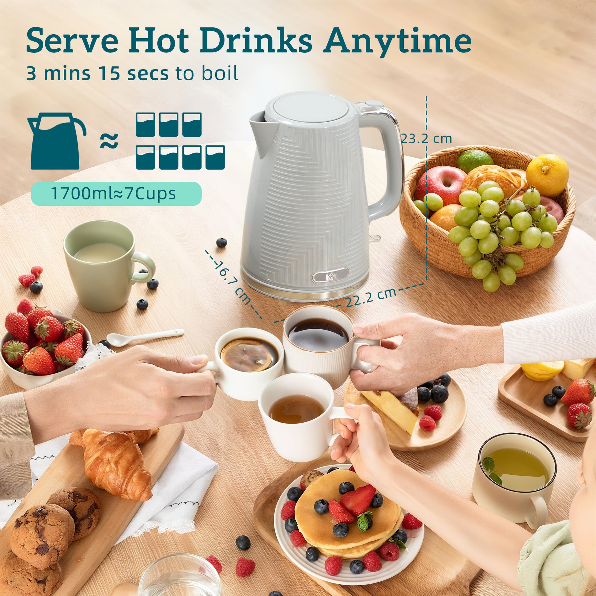 1.7L 3000W Rapid Boil Kettle and 2 Slice Toaster Set Crumb Tray Grey