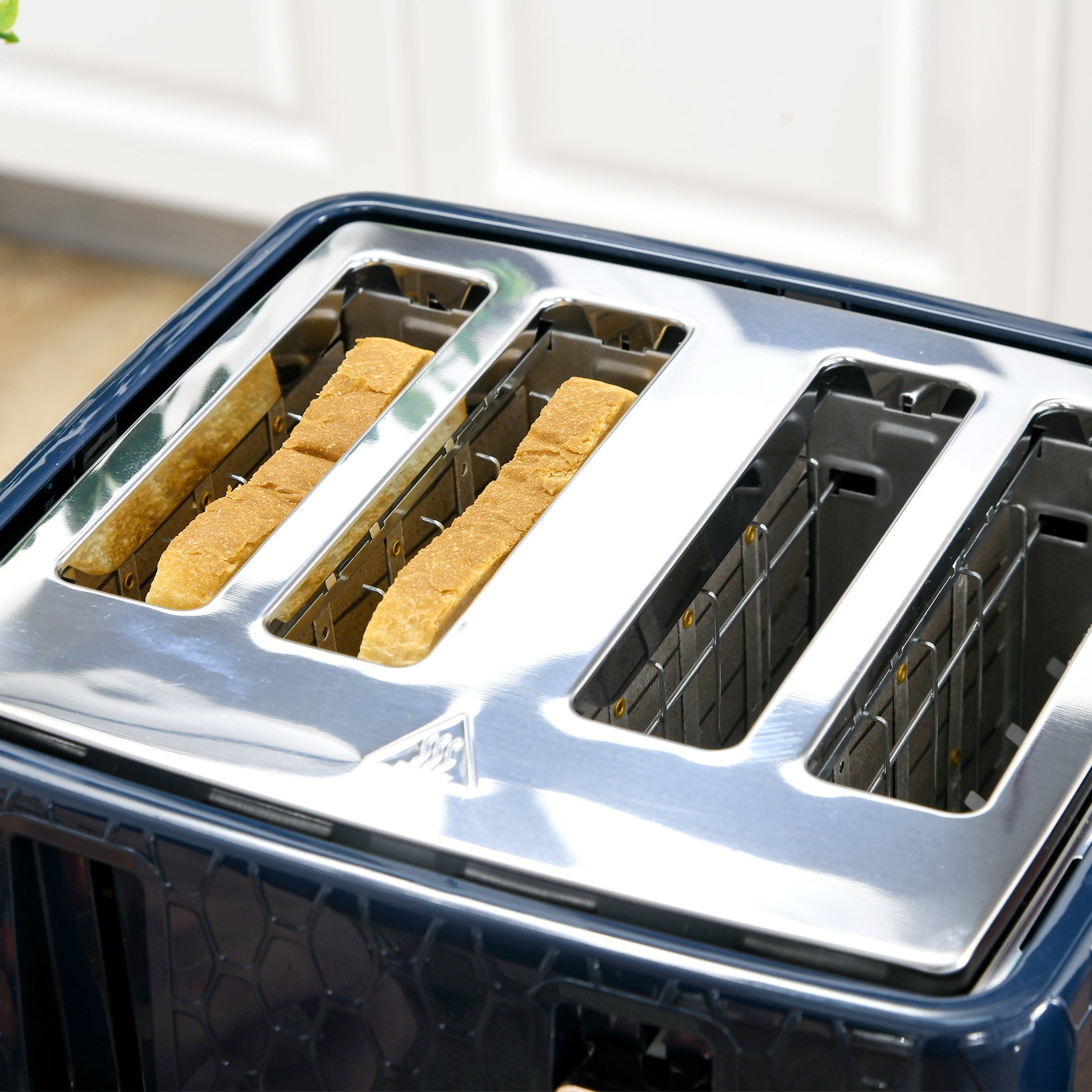 - Crumb tray on toaster for easy cleaning