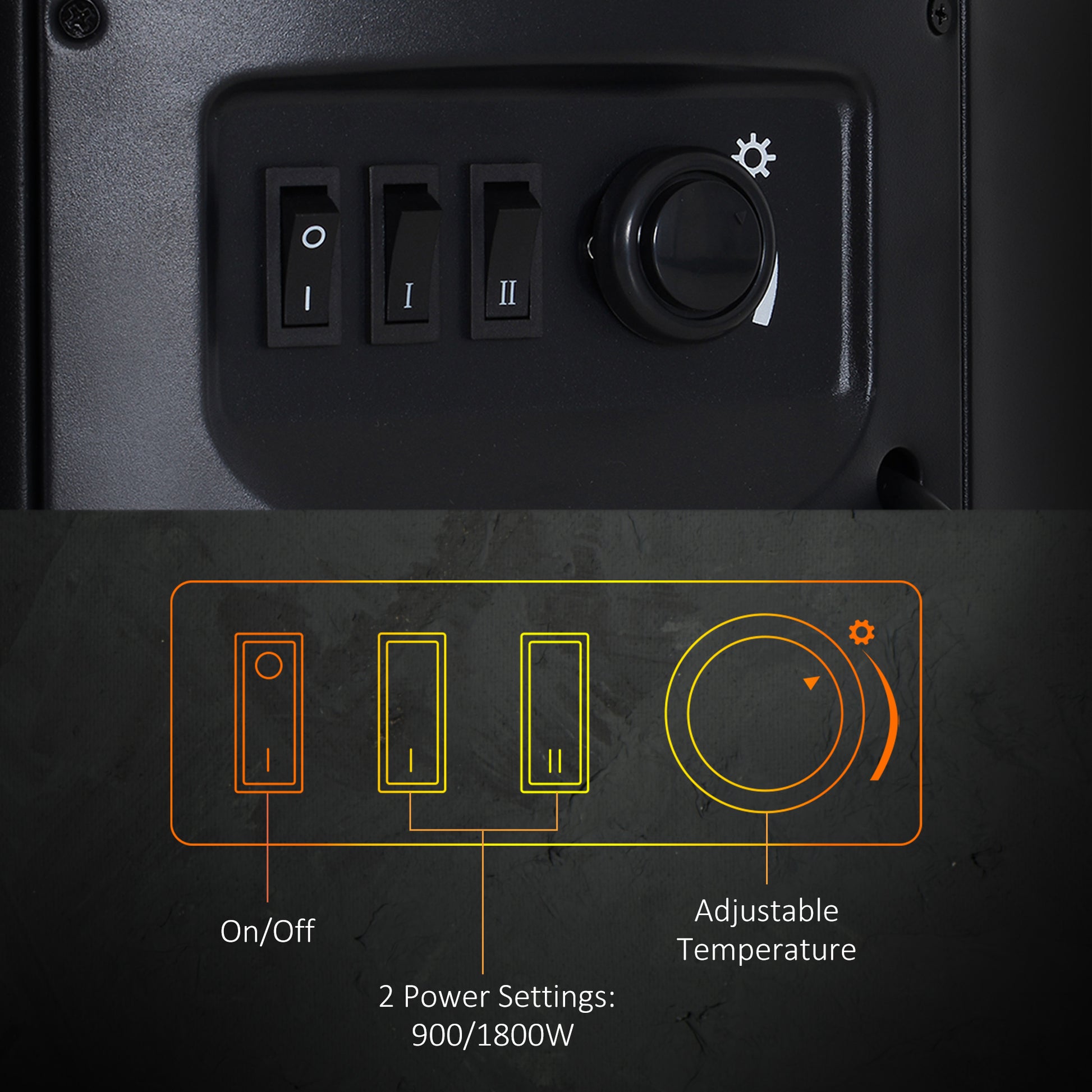- 2 heat setting (900W/1800W), adjustable thermostat control