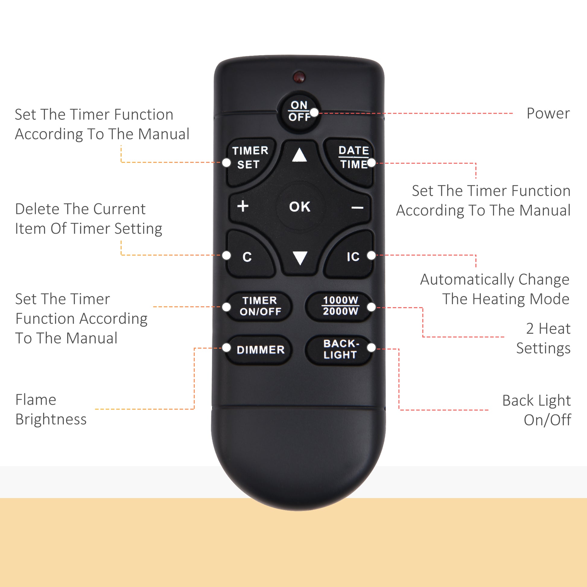 1000W/2000W LED Electric Fireplace Automatic Function Remote Timer Safe