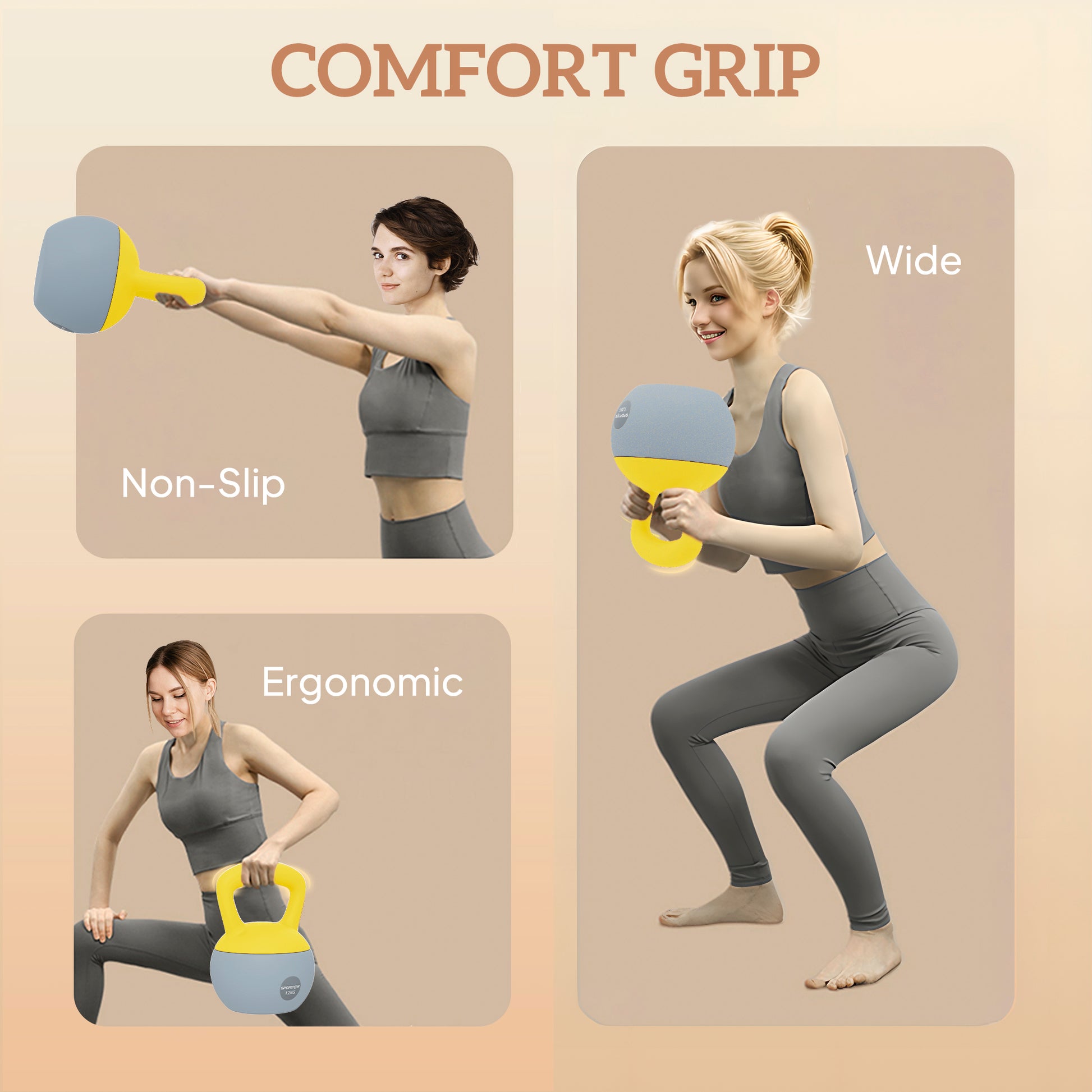12KG Kettlebell with Soft Body and Non-Slip Handle, Yellow, Grey