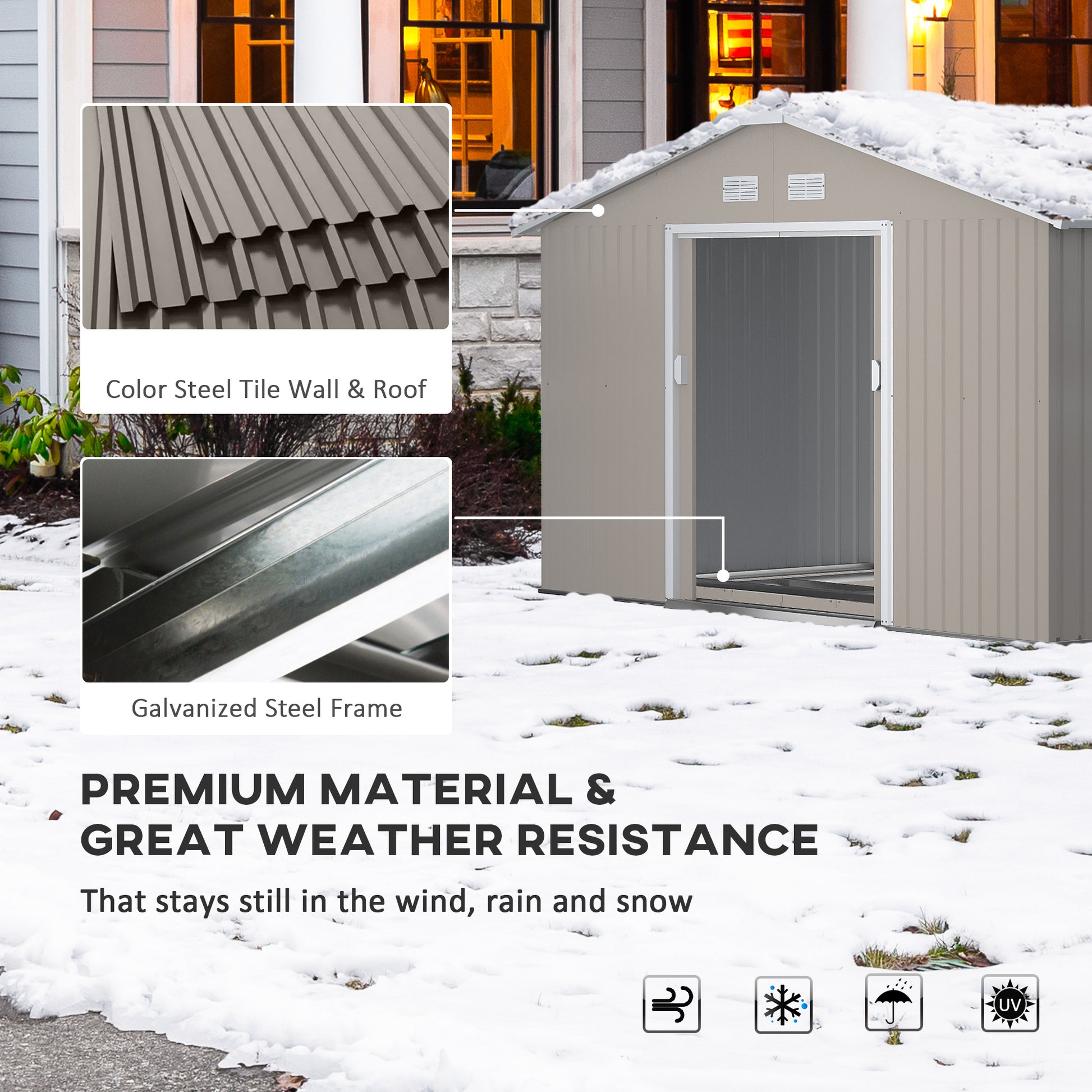 13 x 11ft Garden Metal Storage Shed Outdoor Storage Shed with Foundation Ventilation & Doors, Grey