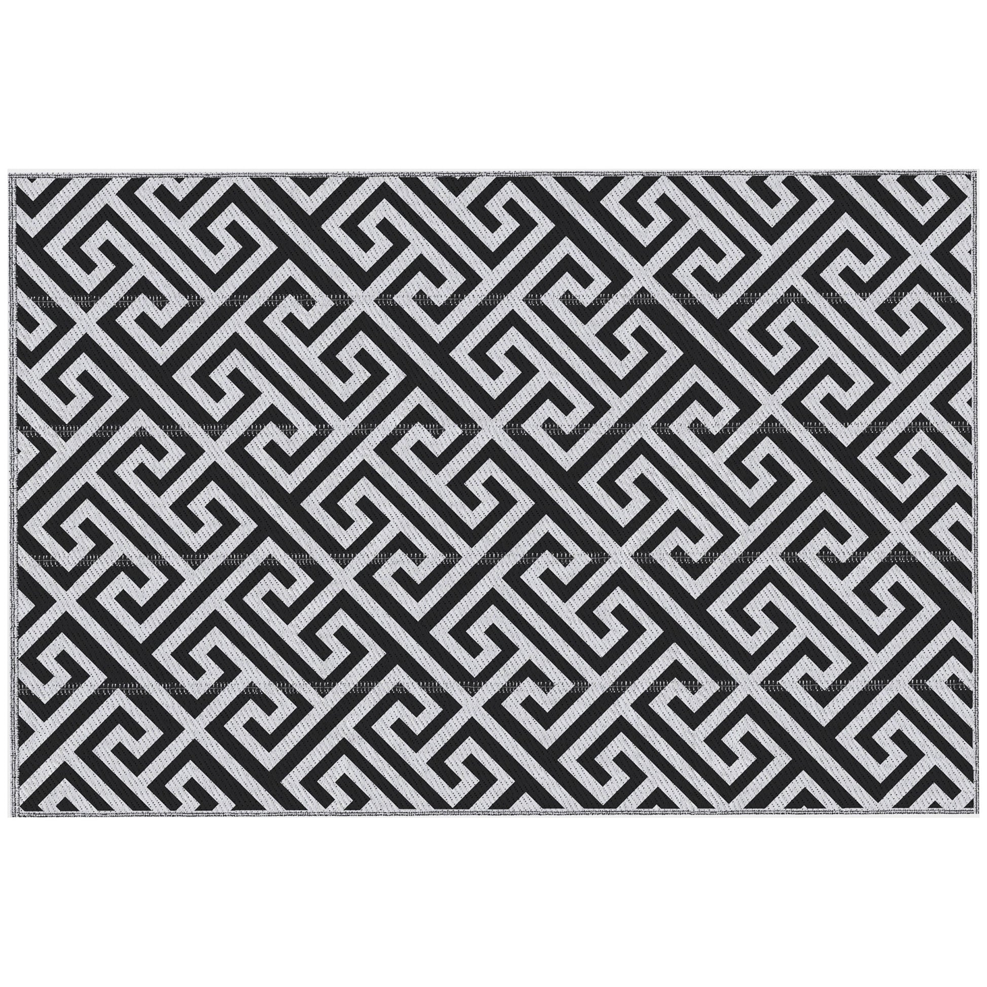 182 x 274 cm(6x9ft) Outdoor Rug Reversible Mat Plastic Straw Rug Portable RV Camping Mat for Garden Deck Picnic Indoor, Black & White