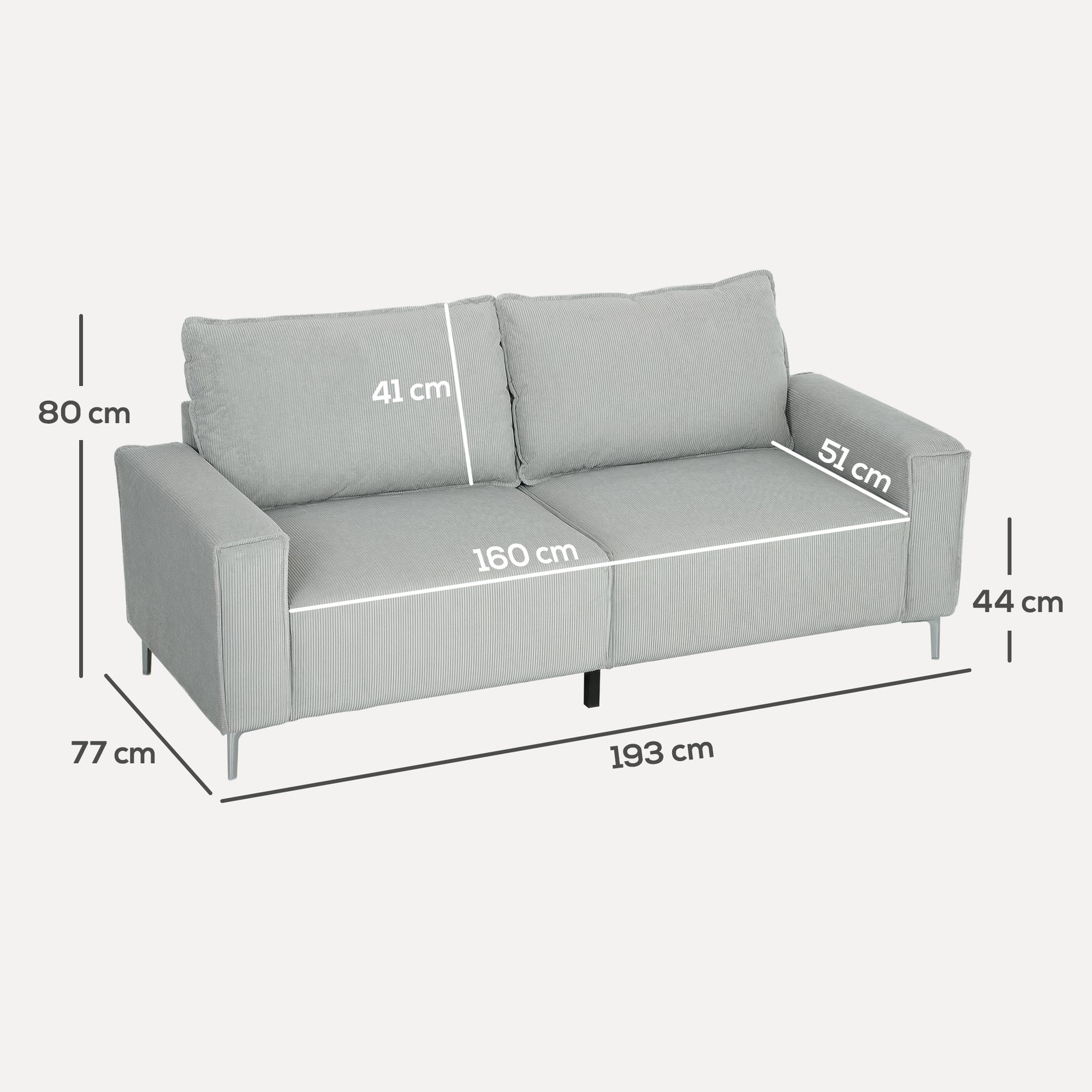 An on-trend modern addition for your home, with this three-seater sofa. Filled with comfortable high-density foam and shape-retaining S-springs, it's wrapped in cool corduroy upholstery. Two back pillows included for extra comfort as you relax into this cosy settee, complete with steel legs for strong support.Specifications