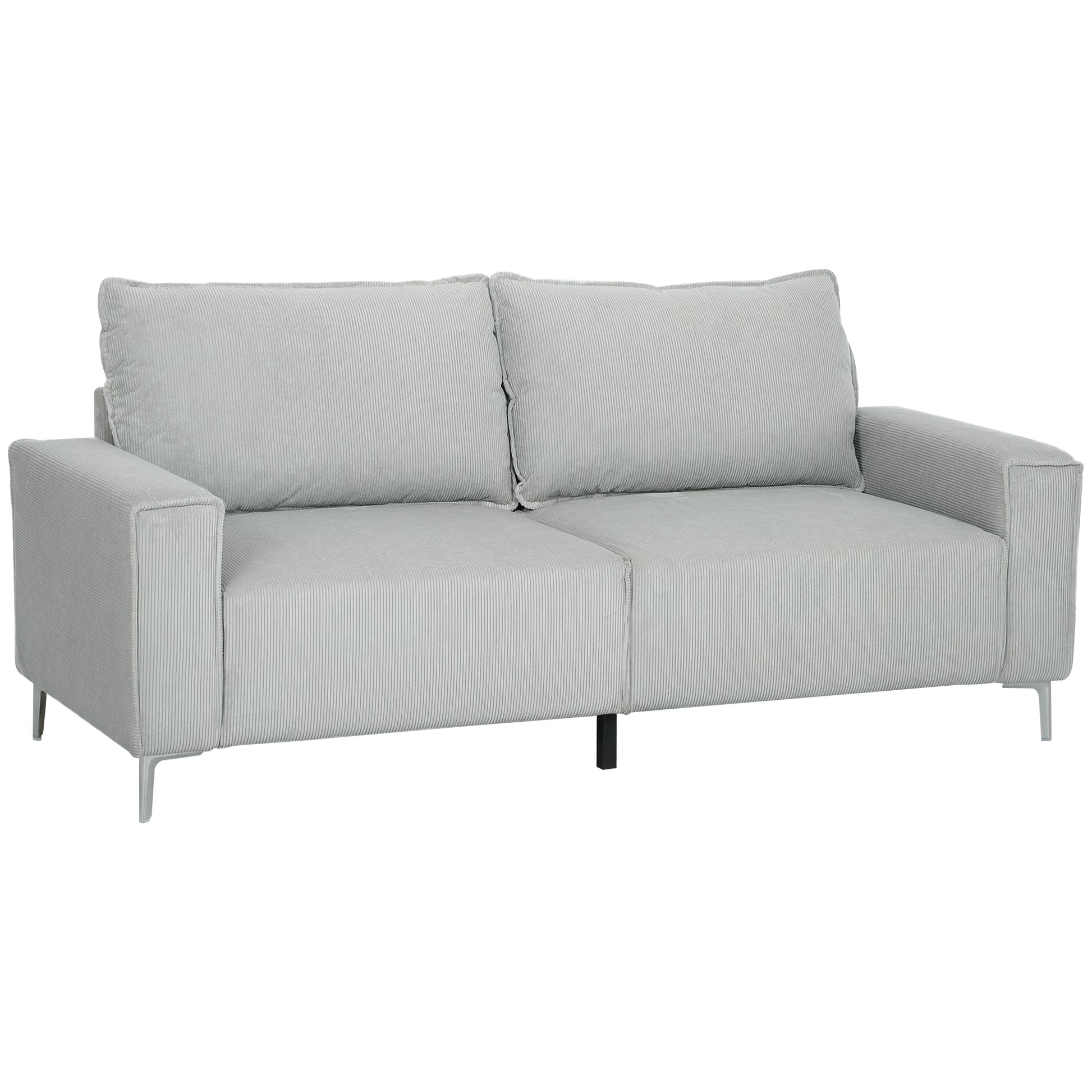 193cm Upholstered Corduroy Settee with Spring Cushion, Light Grey