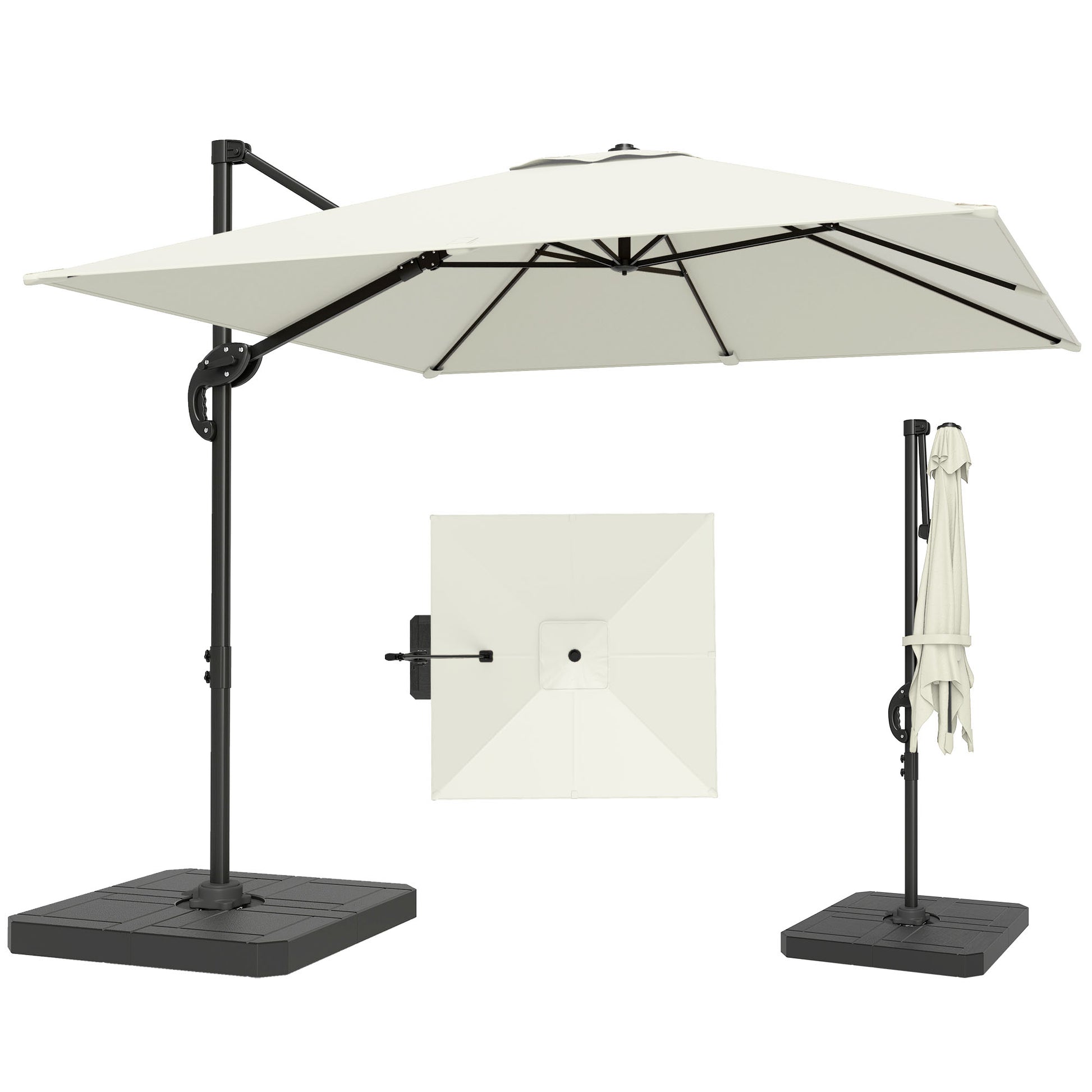 2.4 x 2.4 m Cantilever Parasol w/ Umbrella Weights, Cream White