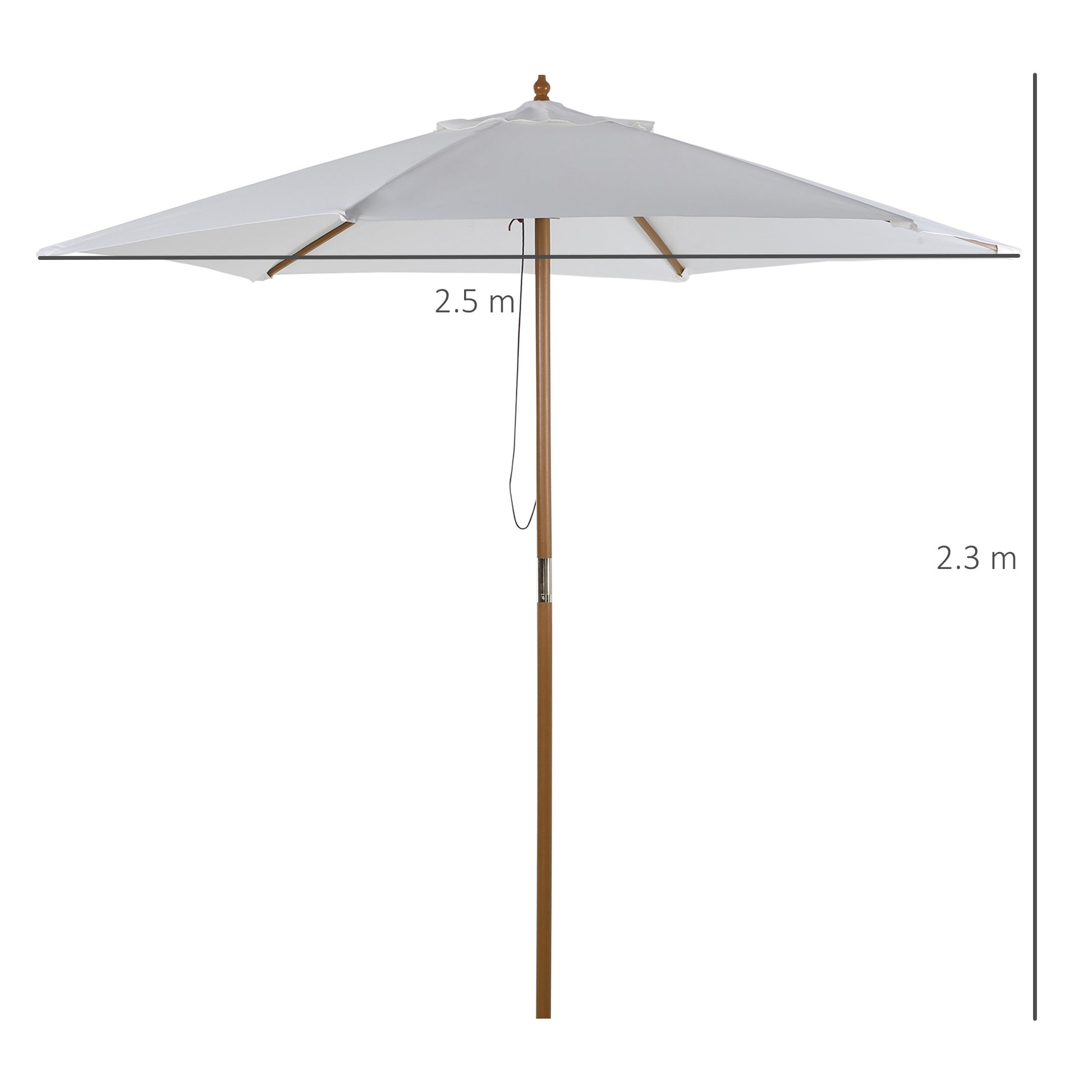 2.5m Patio Umbrella, Wood Garden Parasol, Sun Shade with 6 Ribs and Top Vent for Outdoor, White