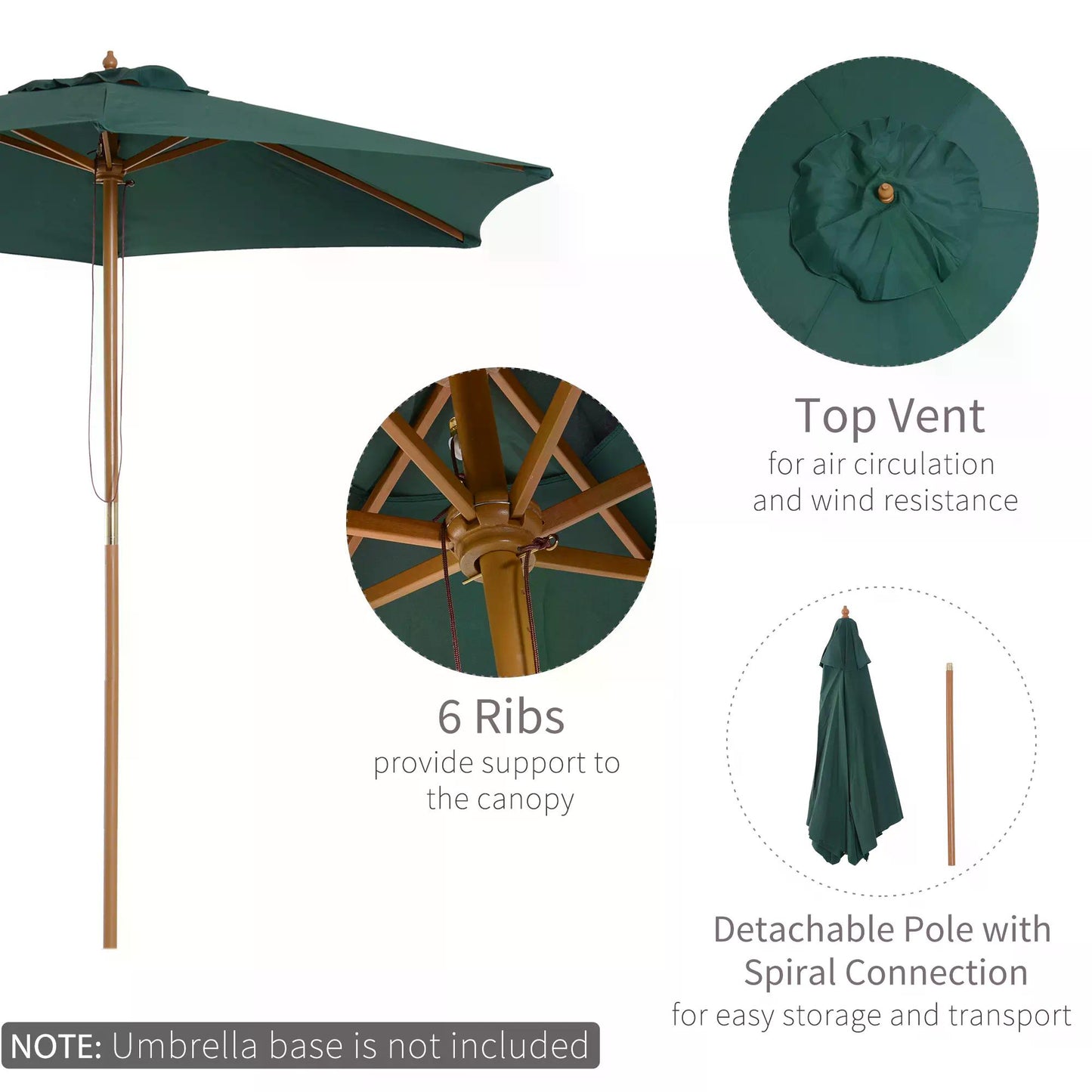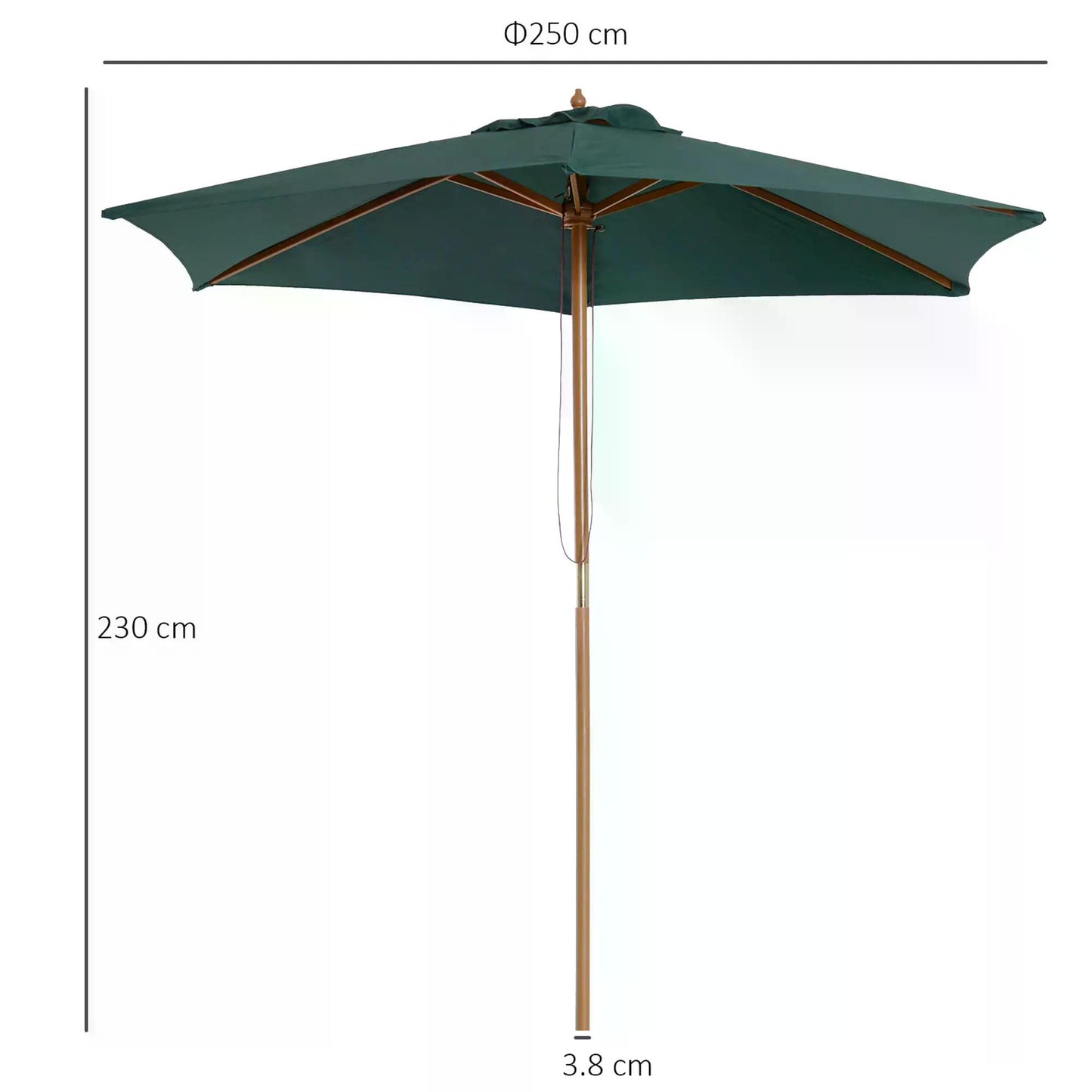 2.5m Wooden Garden Patio Parasol Umbrella-Green