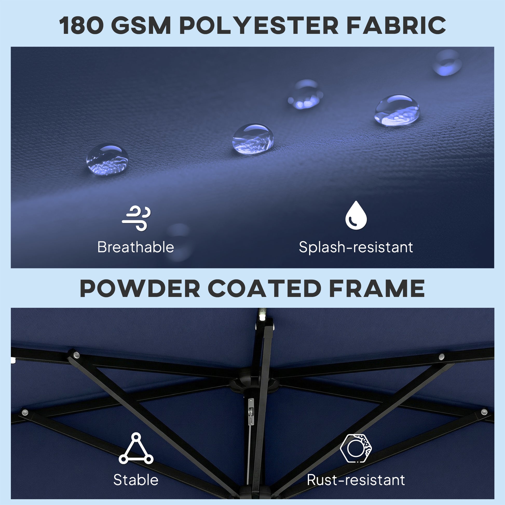 - 180 gsm polyester canopy resists UV rays (UPF 50+) and fading