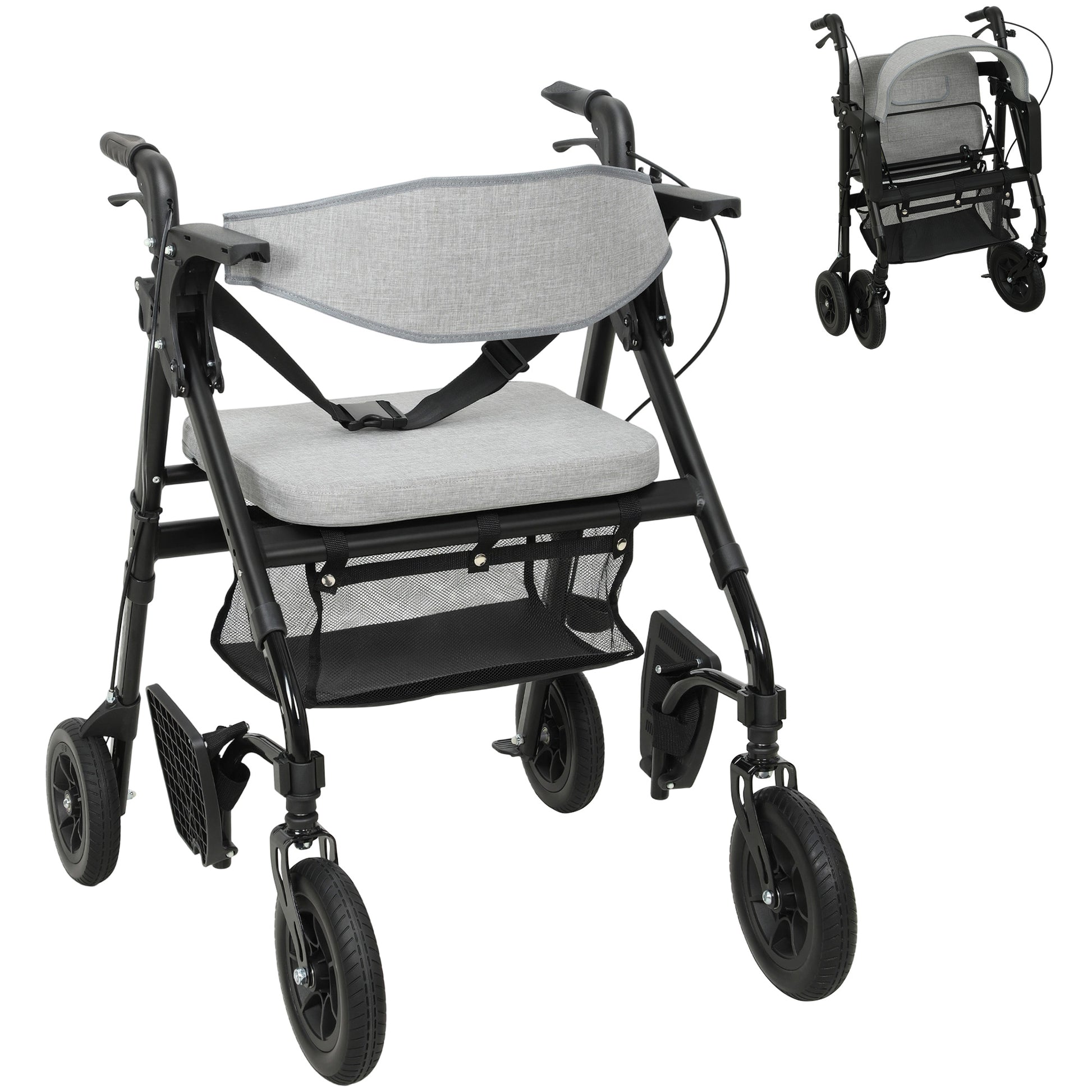 Walk around with support - or sit down and be pushed: do it with this rollator walker. The handle height is adjustable between six positions: this piece is suitable for people between 160–190 cm. Fitted with a wide padded seat and backrest, you can sit and take a break comfortably whenever you need. Made from aluminium, the frame is strong - and can be folded quickly and easily for storage whenever needed.Specifications