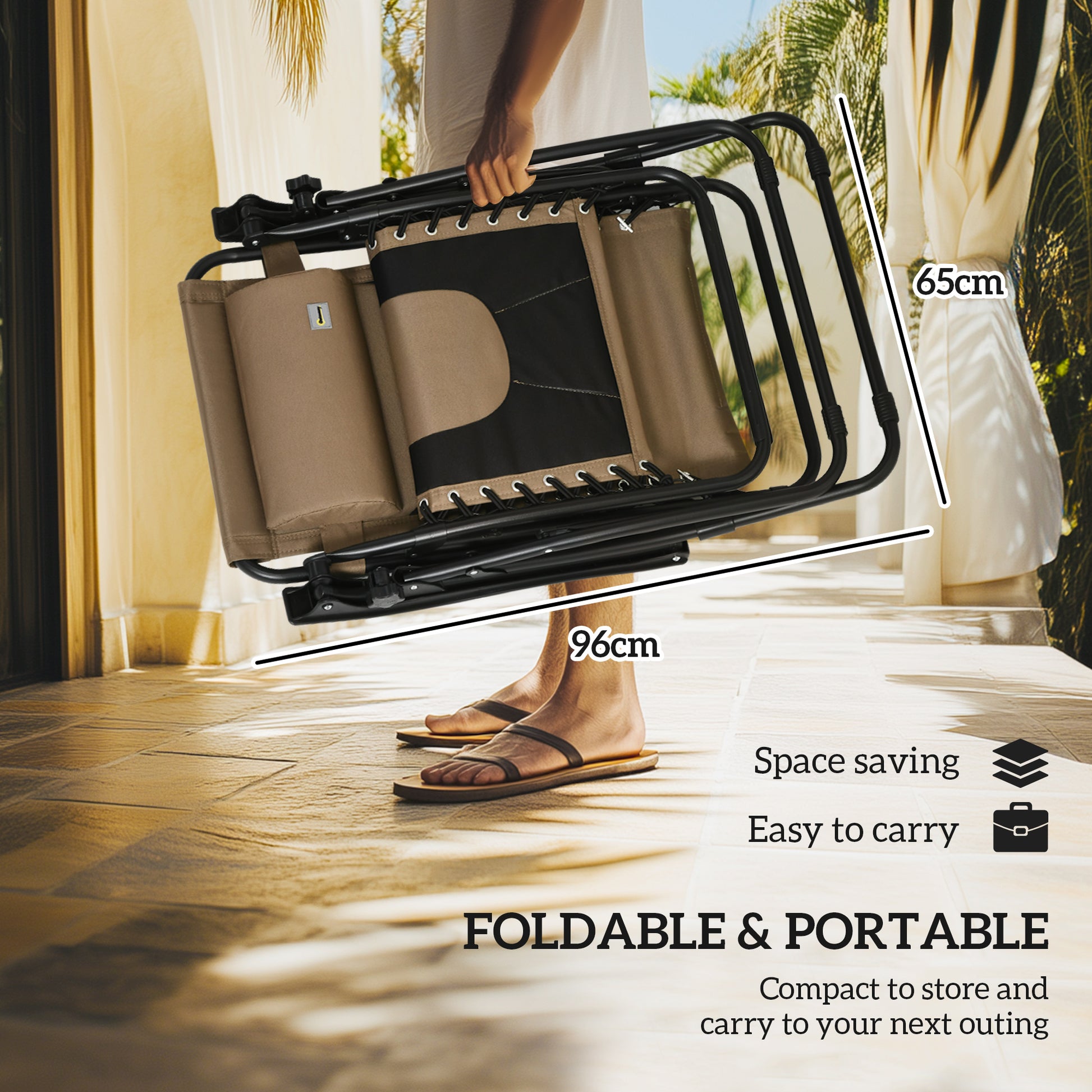 2 Pcs Zero Gravity Lounger Chair, Folding Reclining Chair, Brown