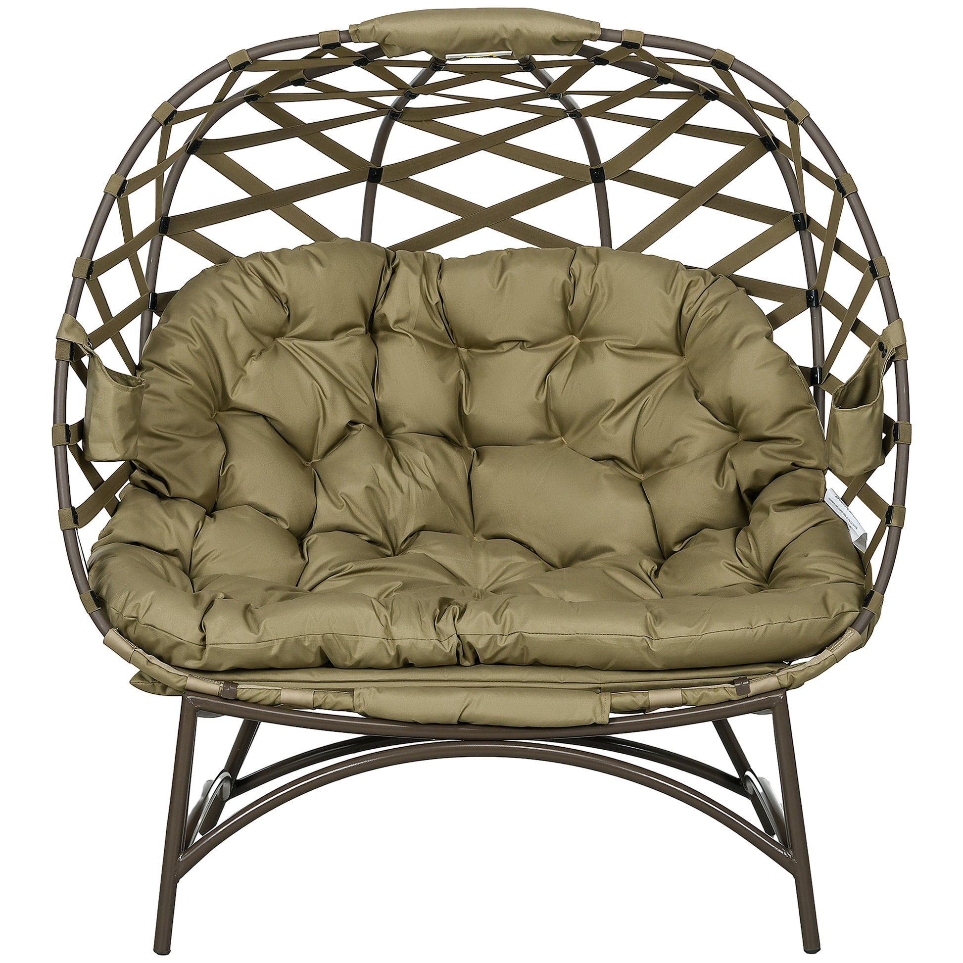 This two-seater egg chair brings you and company together in comfort - and style. It comes in a large egg chair shape, fitted with a large padded cushion to keep you comfortable. A powder coated steel frame means a strong and supportive structure, with the cross weaves adding subtle style. Two side pockets offer handy storage for small items, right next to you.