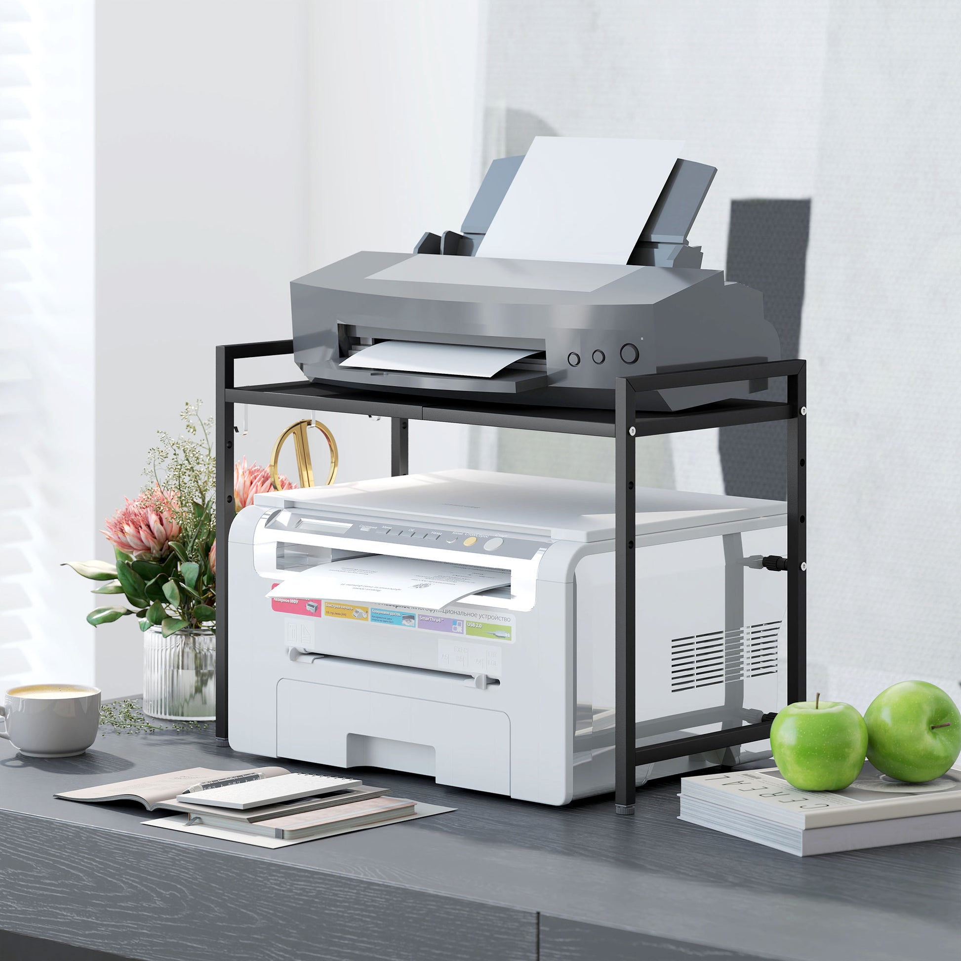 2-Tier Expandable Microwave Oven Rack with 3 Hooks, Black