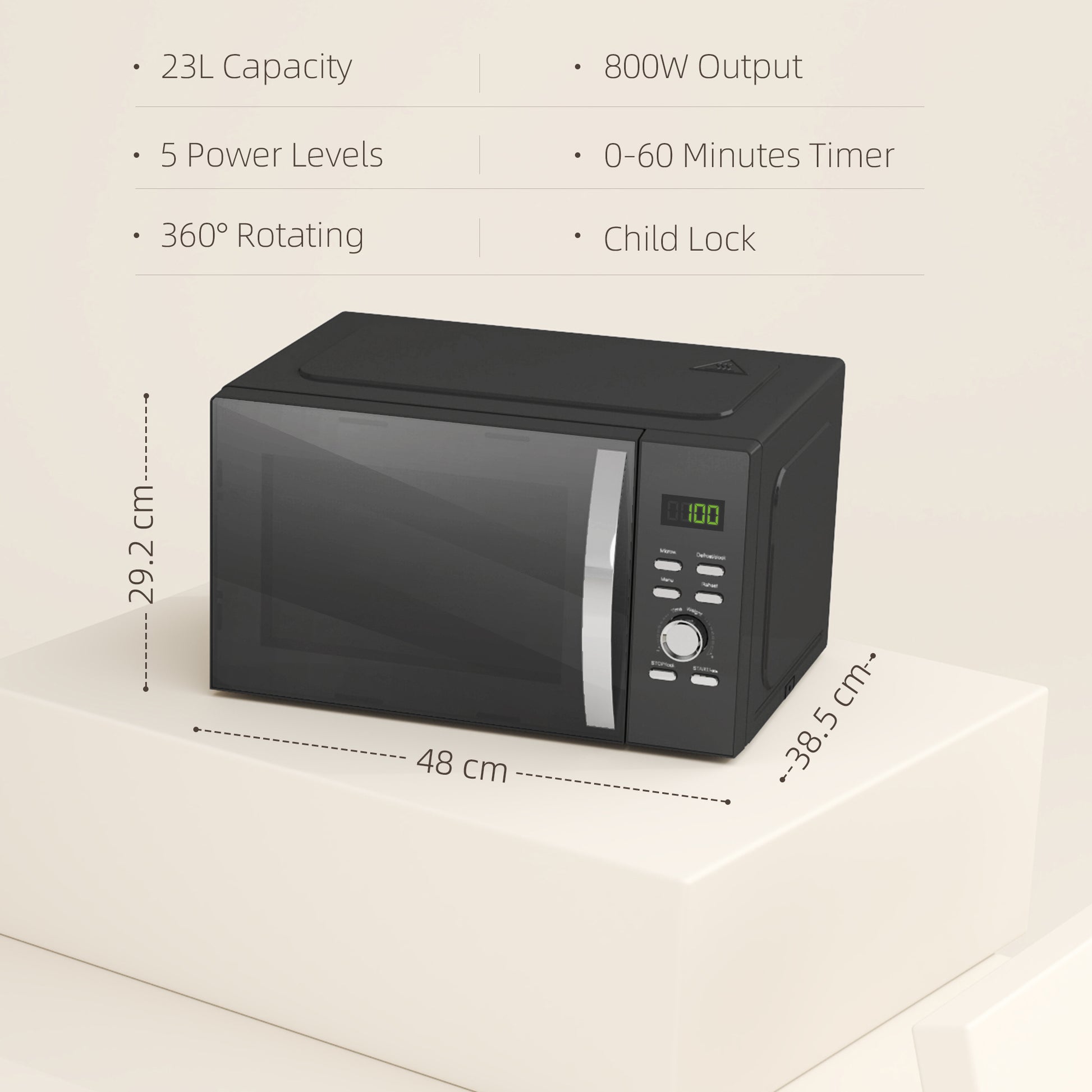 23L 800W Microwave Oven with Digital Display, Auto Cook, Black