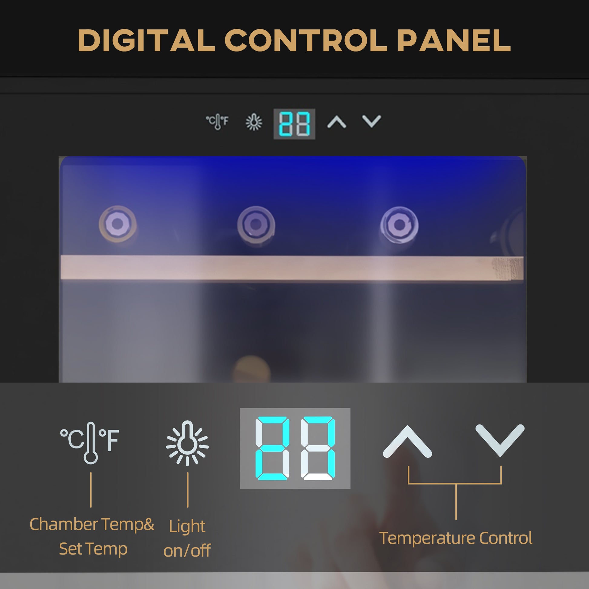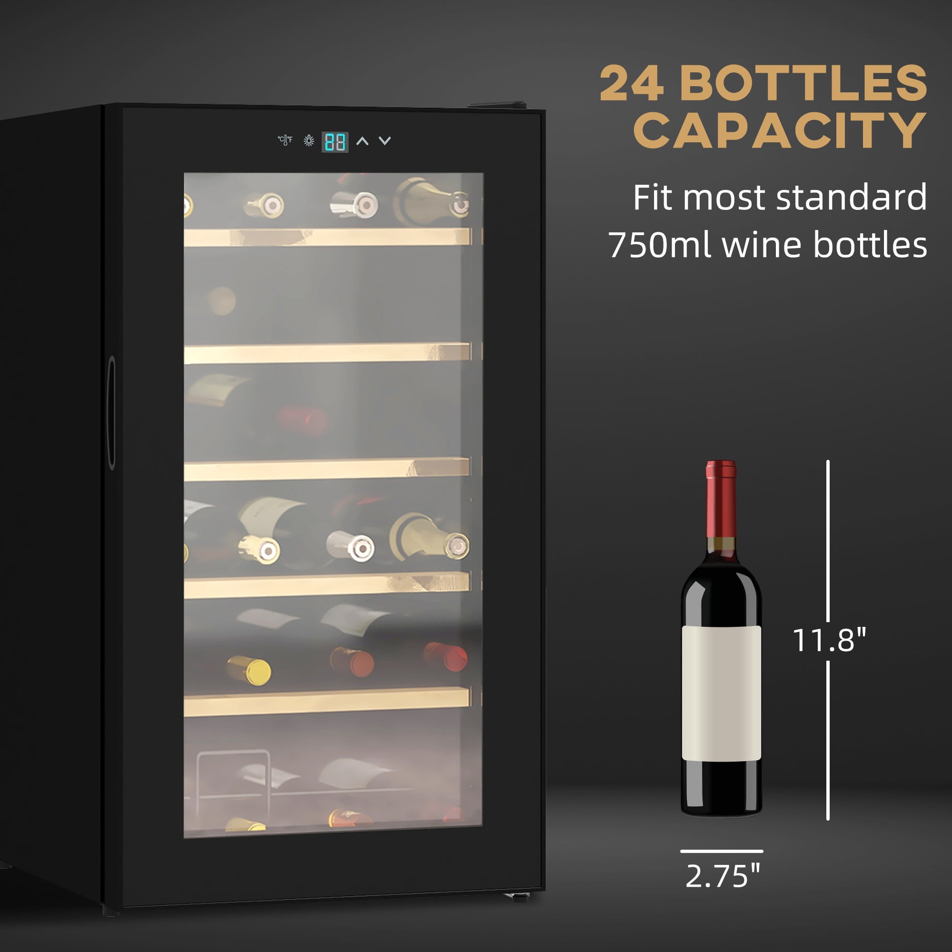 24 Bottles Freestanding Wine Fridge w/ Glass Door, 65L Single Zone Wine Cooler Fridge w/ Digital Touch Screen Controls, LED Light, Black