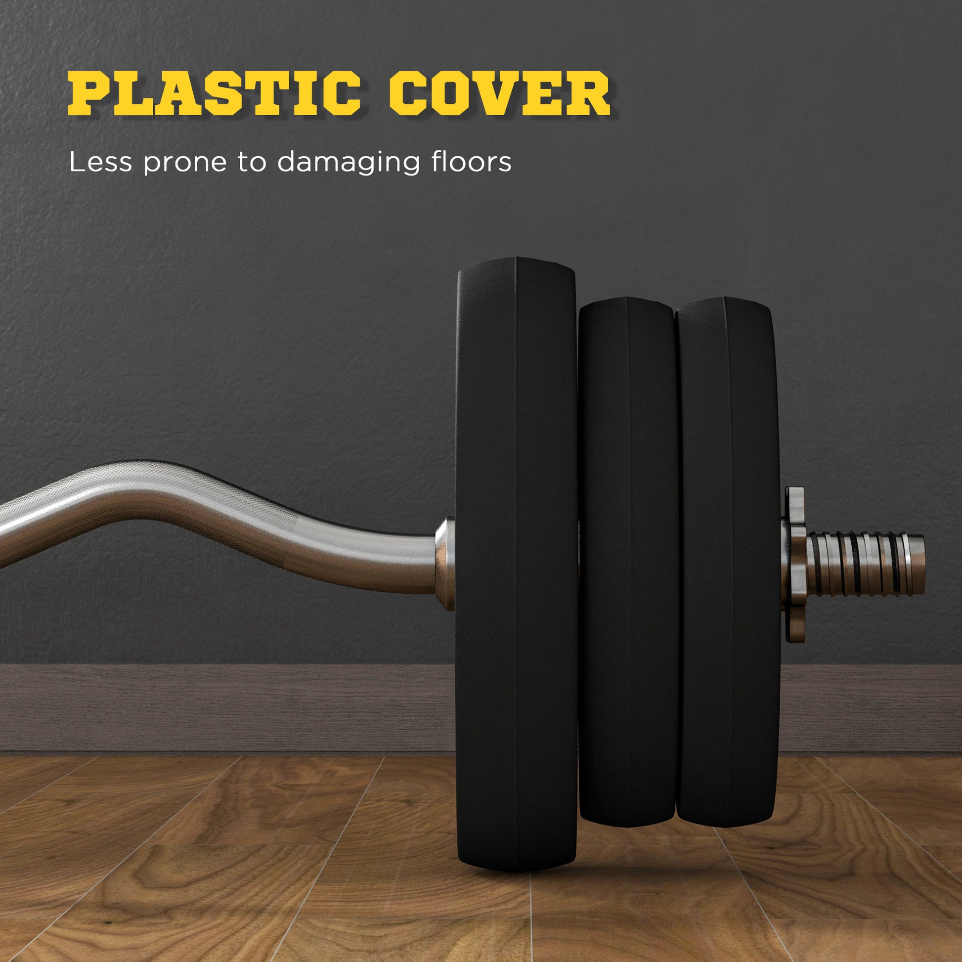 Elevate your home gym with the weights barbell set, a versatile 25kg collection that includes two 5kg, four 2.5kg and a 5kg bar. Designed for ease and comfort, the curl bar's non-slip grip ensures your sessions are slip-free, while the protective plastic coating keeps your gear in top notch condition. For those keen on enhancing their bench press bar and weights set.Specifications