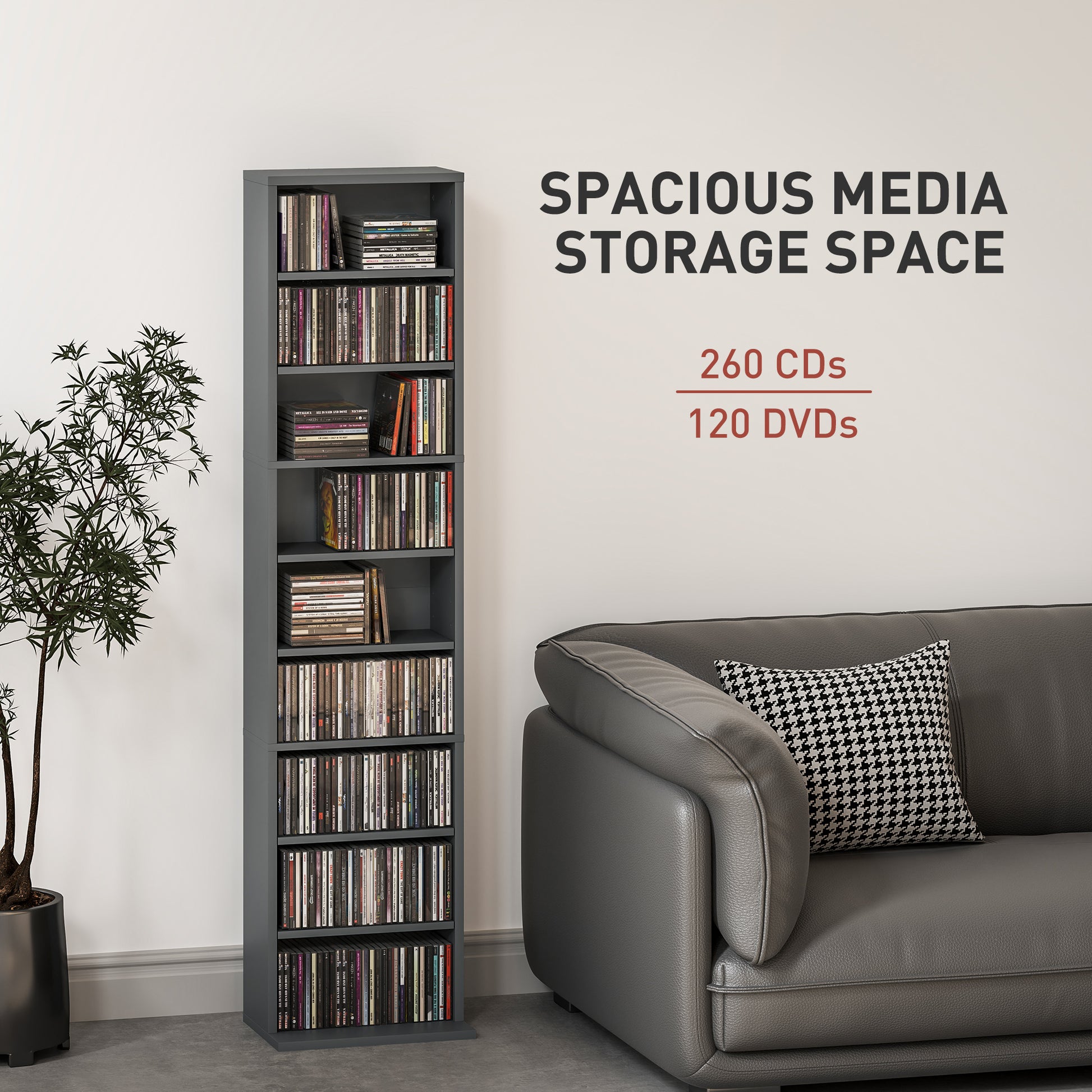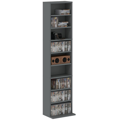 260 CD Storage Unit 120 DVD Storage Tower with 9 Compartments Grey