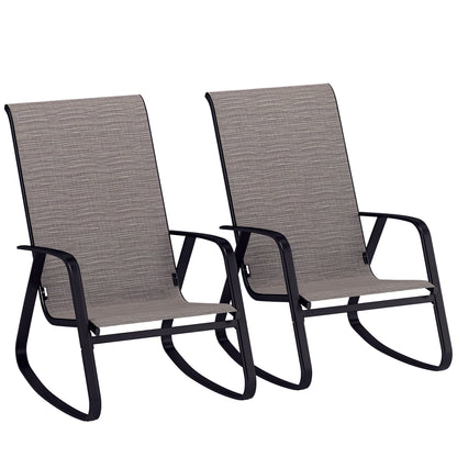 Everyday leisure outdoors, with this set of two rocking chairs. The rocking base moves between a 110-150° range, for gentle and smooth movement. The seat is made from breathable and quick-drying texteline, making this patio rocking chair set comfortable and suitable for outdoor use.Specifications